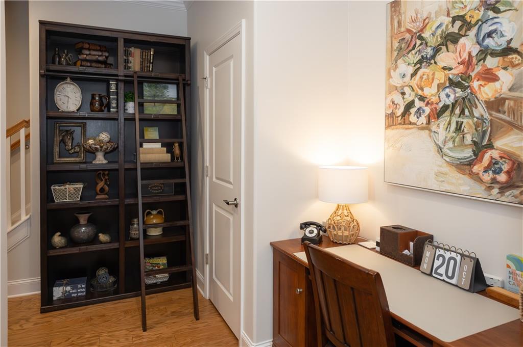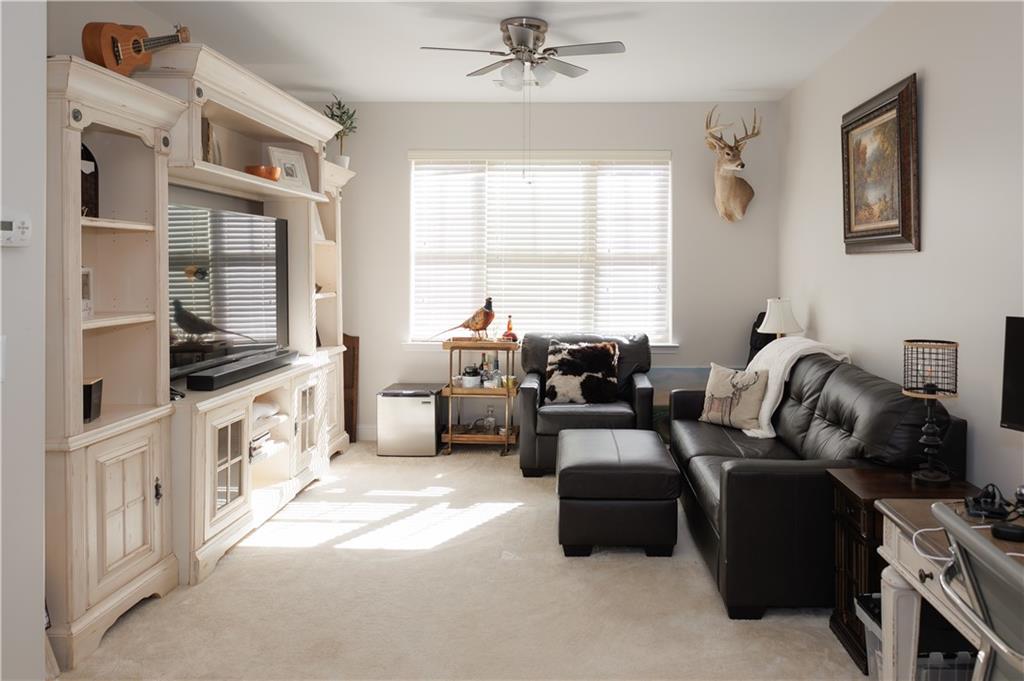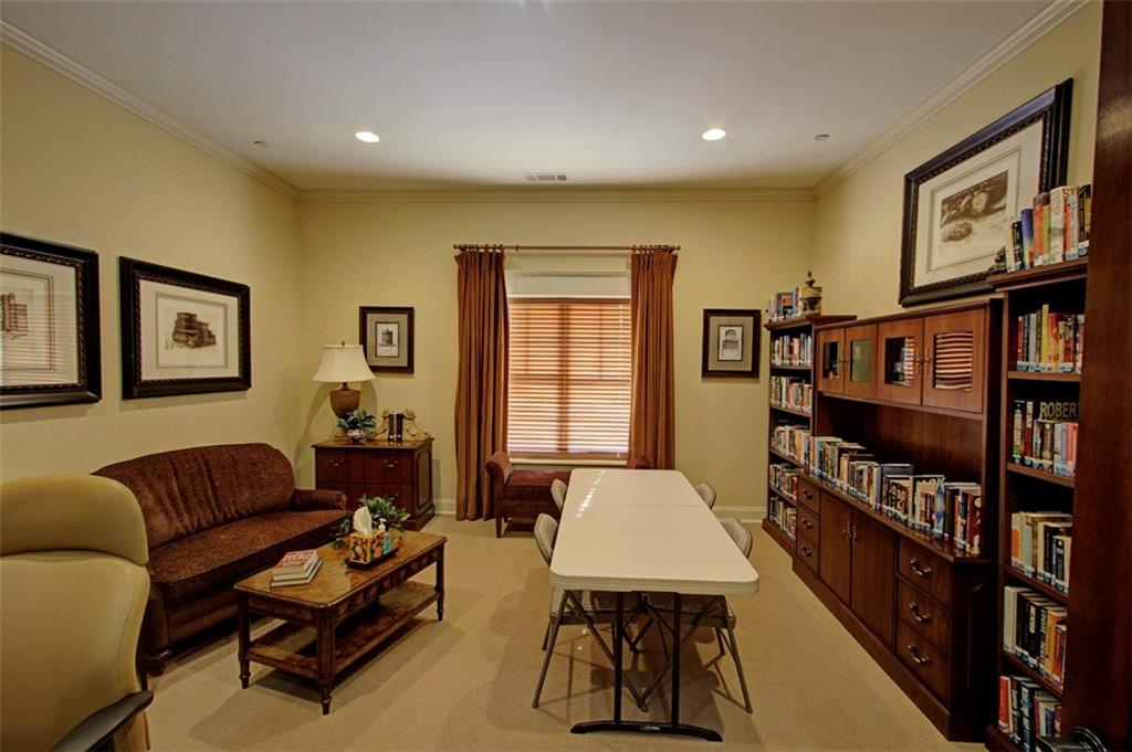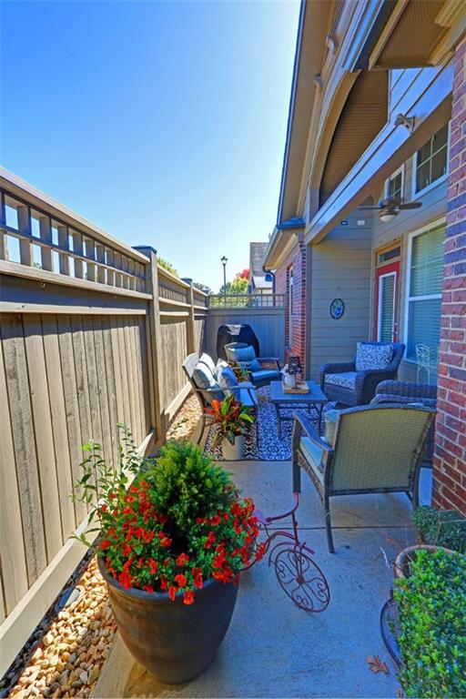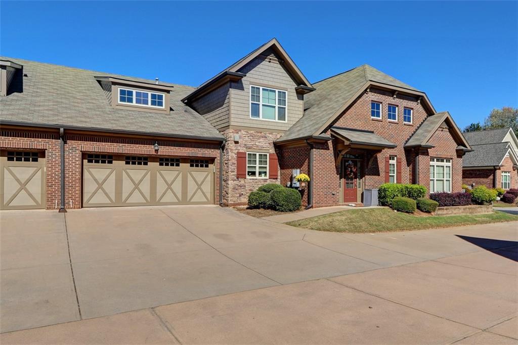 Exquisite, beautifully maintained condominium in Wellstone, an active 55+ community offering resort-style amenities including a pool, hot tub, fitness center, billiards room, library, and community garden. Conveniently located close to shopping, dining, and medical facilities, this home was freshly updated in 2023 with the entire interior painted, including walls, trim, and ceilings. The laundry room received a stylish makeover, and designer touches have been added throughout, including a custom built-in ArtTV that remains with the home. The light-filled great room features soaring ceilings, a gas log fireplace, ceiling fan, custom built-in bookcases, and a wall of windows with beautiful outdoor views. The chef’s kitchen is a dream with stainless steel appliances, granite countertops, stained wood cabinetry, and an oversized granite island with abundant storage. The spacious main-level primary suite features a tray ceiling and private access to the covered patio, while the spa-like primary bath offers dual vanities, an oversized shower, and a huge upgraded walk-in closet. A secondary bedroom suite with a full bath is also on the main level, perfect for guests or an office. The laundry room includes generous storage, direct garage access, and comes with a washer and dryer. Upstairs you’ll find a comfortable guest suite with a full bathroom and a large attic storage area. The private covered patio is perfect for relaxing or entertaining, complete with an extended grill area, privacy fence, and soft lighting. The homeowner is relocating within the neighborhood to accommodate aging parents, reflecting just how special this community truly is. This move-in-ready home combines luxury, comfort, and low-maintenance living in one of the area’s most sought-after active adult communities.