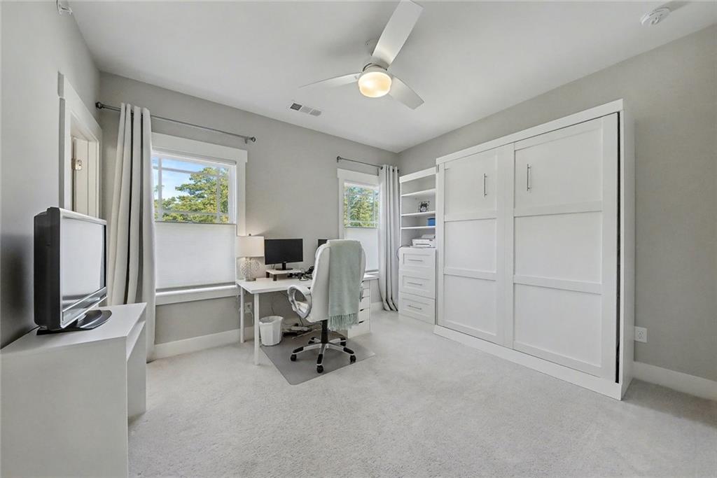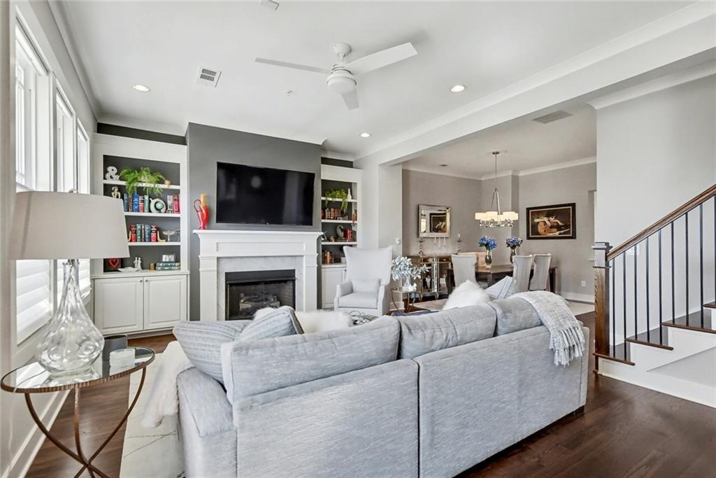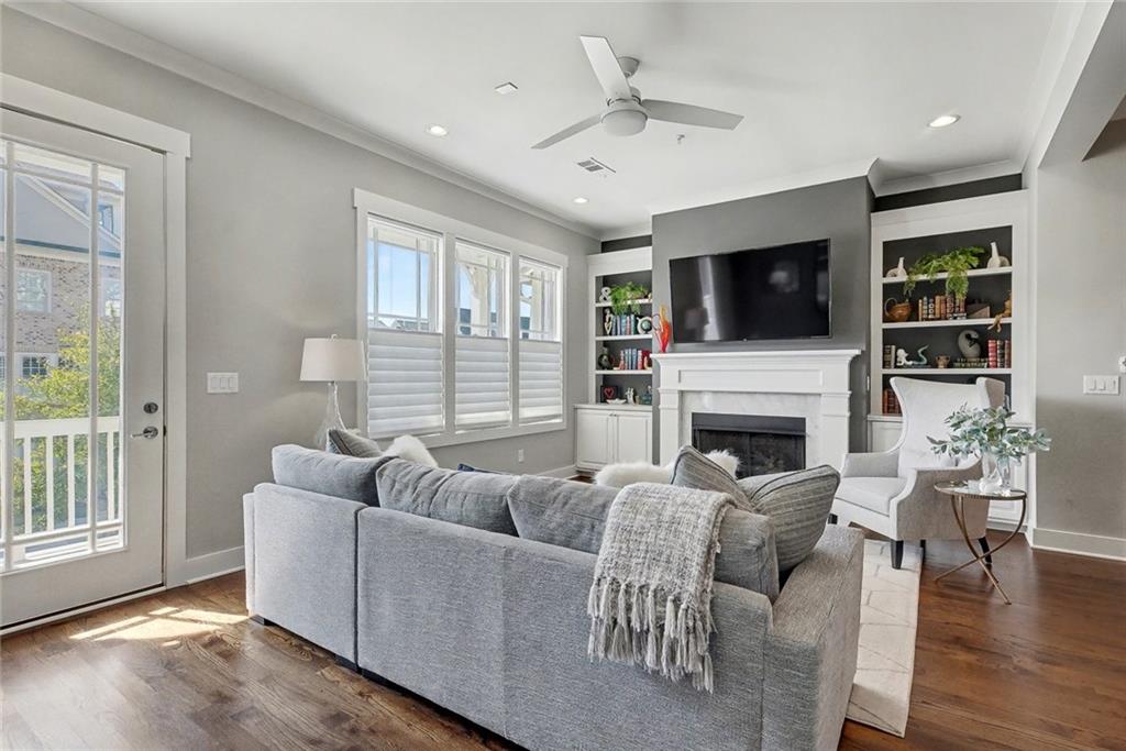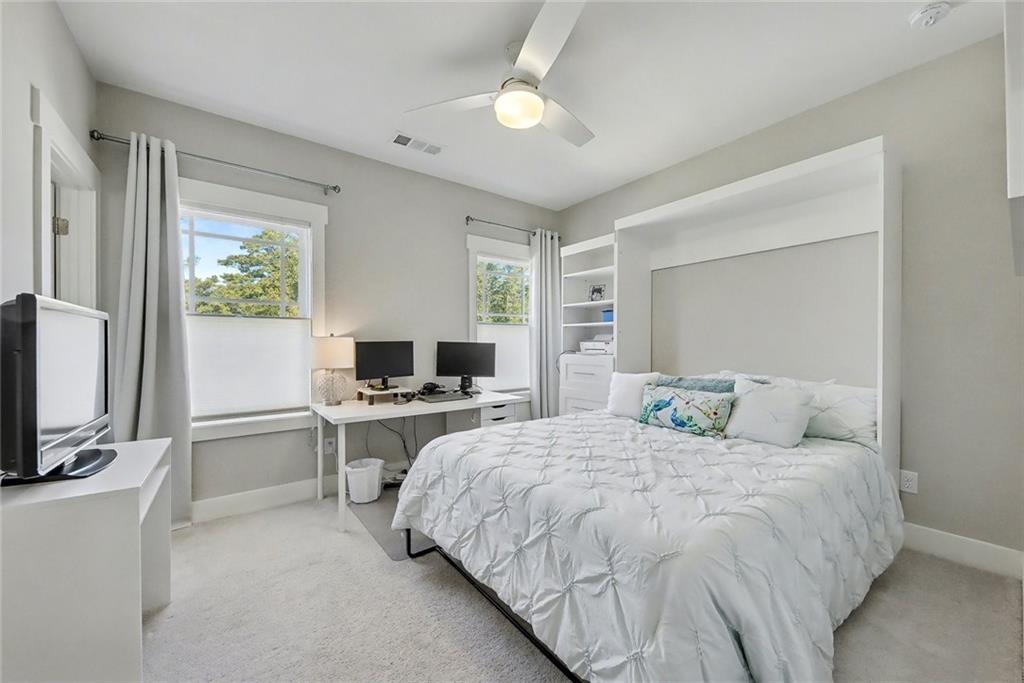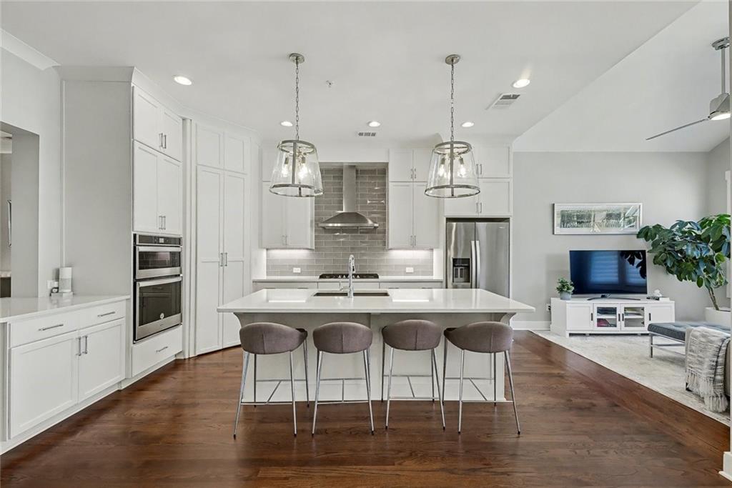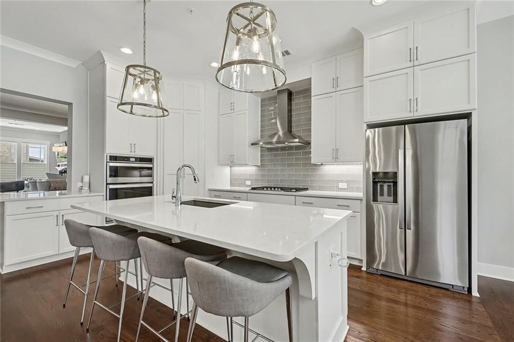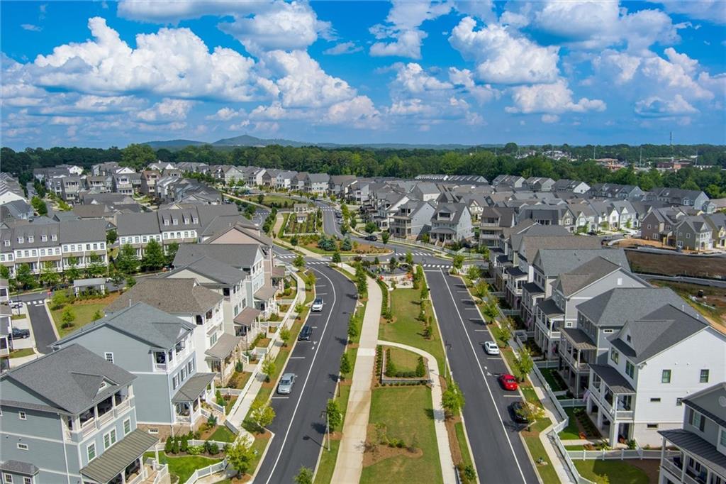 Beautifully appointed townhome located in the award-winning South on Main community in Downtown Woodstock. This stylish Andrews plan offers three finished levels of thoughtfully designed living space with exceptional attention to detail. The terrace level welcomes you with a warm foyer leading to a private guest suite featuring a full bath and charming barn door—ideal for visitors or a dedicated home office. The rear-entry two-car garage opens to a convenient drop zone with built-in storage for everyday organization. The main living area is bright and open, centered around a spacious family room with a fireplace, built-in shelving, and access to a covered front balcony perfect for relaxing or enjoying your morning coffee. The adjoining dining area includes a built-in bar with a beverage cooler, offering a seamless flow for entertaining. A true highlight of the home is the gourmet kitchen, showcasing elegant white cabinetry, a large island with seating, and a breakfast area enhanced by custom built-ins for added style and function. Step outside to the rear deck—an inviting space for outdoor dining or evening unwinding. A cozy keeping room and powder bath complete this level. Upstairs, the serene owner’s suite features two generous walk-in closets and a luxurious spa bathroom with dual vanities and an oversized walk-in shower. The secondary bedroom is equally well-appointed, featuring a Murphy bed for flexible use and a private ensuite bath. The laundry room, equipped with cabinetry and a sink, provides both convenience and practicality. An elevator can be added if desired, as the home was designed with an optional shaft (a portion is currently used as a bar area in the dining space). Living in South on Main offers a lifestyle like no other. The community features over 20 acres of green space, including parks, walking trails, and a community garden. Enjoy resort-style amenities such as a pool with splash pad and cabana, a 6,000-square-foot clubhouse with fitness center and game room, dog parks, play areas, and The SHED stage for concerts and community gatherings. Just a short stroll from the shops, restaurants, and entertainment of Downtown Woodstock—and minutes to I-575—this location offers the perfect balance of convenience and charm. Come experience the unmatched lifestyle that makes South on Main one of Metro Atlanta’s most sought-after communities.