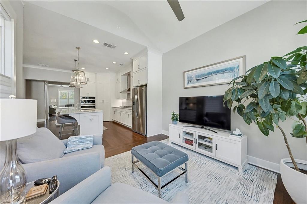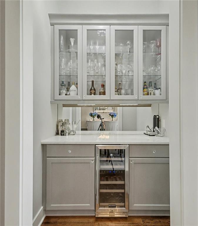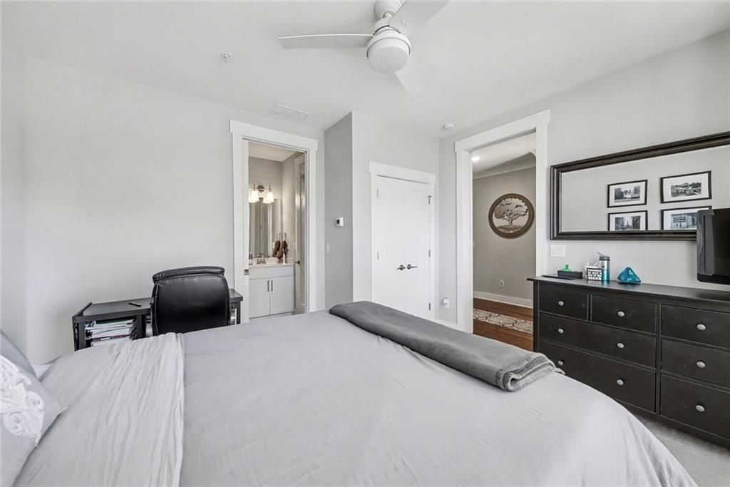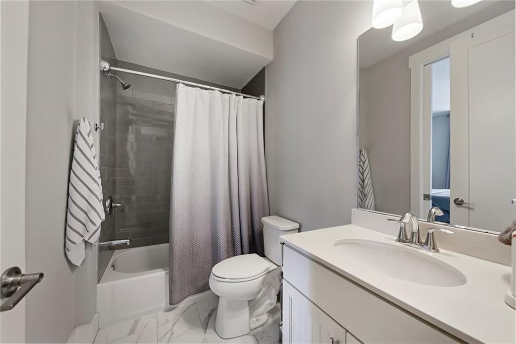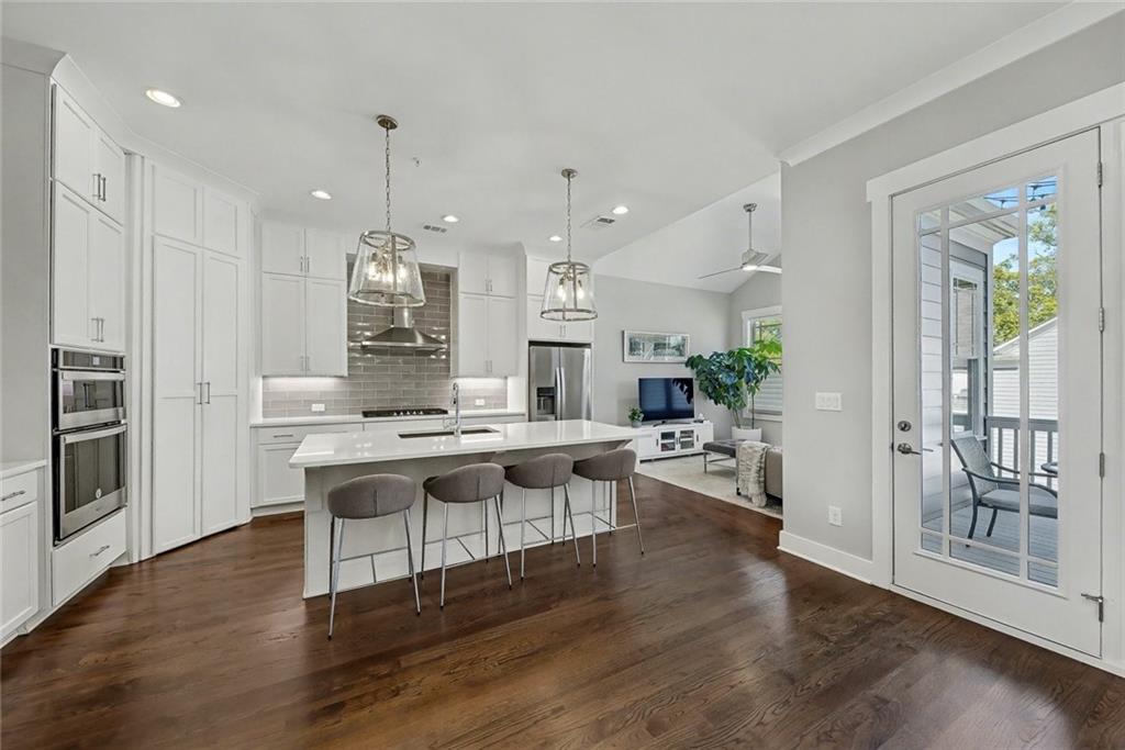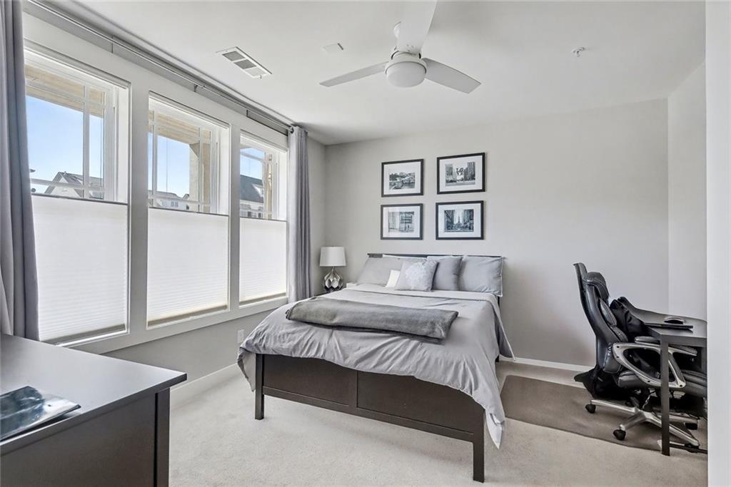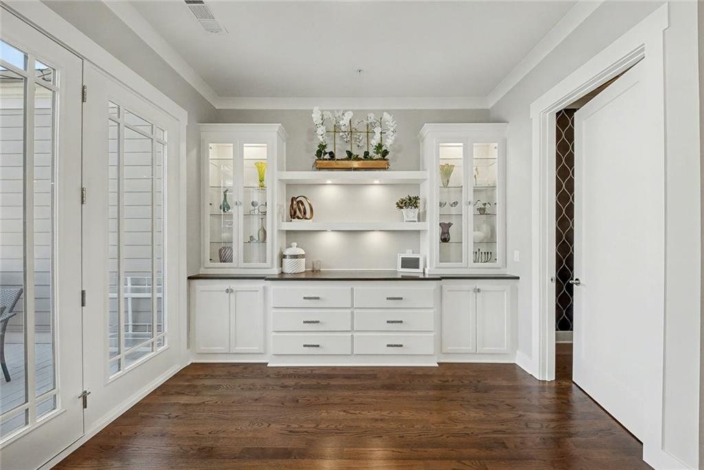 Beautifully appointed townhome located in the award-winning South on Main community in Downtown Woodstock. This stylish Andrews plan offers three finished levels of thoughtfully designed living space with exceptional attention to detail. The terrace level welcomes you with a warm foyer leading to a private guest suite featuring a full bath and charming barn door—ideal for visitors or a dedicated home office. The rear-entry two-car garage opens to a convenient drop zone with built-in storage for everyday organization. The main living area is bright and open, centered around a spacious family room with a fireplace, built-in shelving, and access to a covered front balcony perfect for relaxing or enjoying your morning coffee. The adjoining dining area includes a built-in bar with a beverage cooler, offering a seamless flow for entertaining. A true highlight of the home is the gourmet kitchen, showcasing elegant white cabinetry, a large island with seating, and a breakfast area enhanced by custom built-ins for added style and function. Step outside to the rear deck—an inviting space for outdoor dining or evening unwinding. A cozy keeping room and powder bath complete this level. Upstairs, the serene owner’s suite features two generous walk-in closets and a luxurious spa bathroom with dual vanities and an oversized walk-in shower. The secondary bedroom is equally well-appointed, featuring a Murphy bed for flexible use and a private ensuite bath. The laundry room, equipped with cabinetry and a sink, provides both convenience and practicality. An elevator can be added if desired, as the home was designed with an optional shaft (a portion is currently used as a bar area in the dining space). Living in South on Main offers a lifestyle like no other. The community features over 20 acres of green space, including parks, walking trails, and a community garden. Enjoy resort-style amenities such as a pool with splash pad and cabana, a 6,000-square-foot clubhouse with fitness center and game room, dog parks, play areas, and The SHED stage for concerts and community gatherings. Just a short stroll from the shops, restaurants, and entertainment of Downtown Woodstock—and minutes to I-575—this location offers the perfect balance of convenience and charm. Come experience the unmatched lifestyle that makes South on Main one of Metro Atlanta’s most sought-after communities.