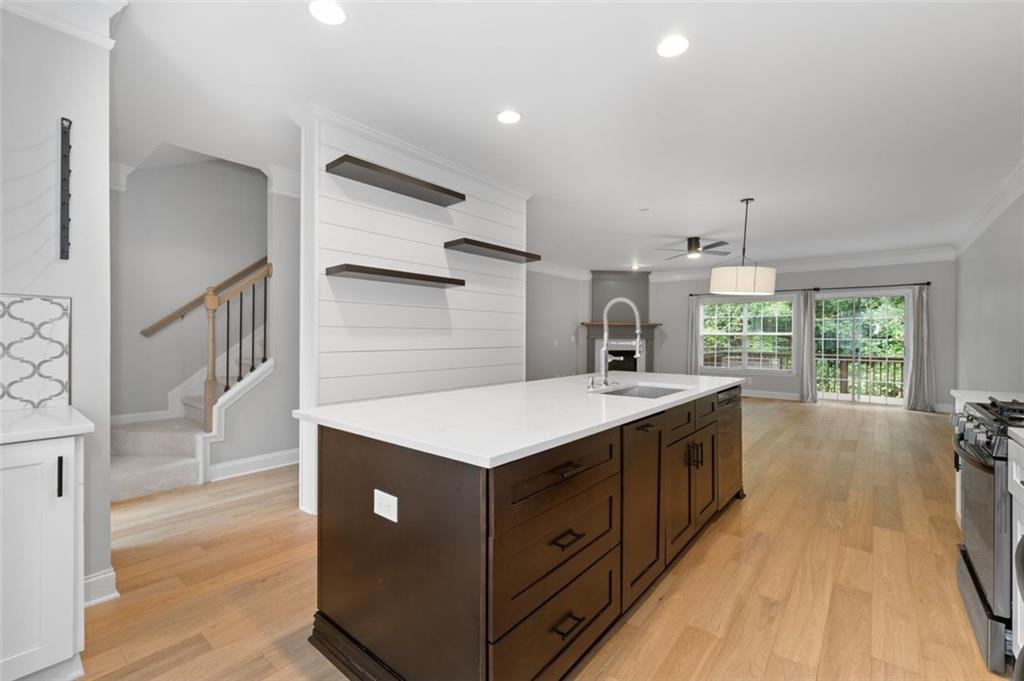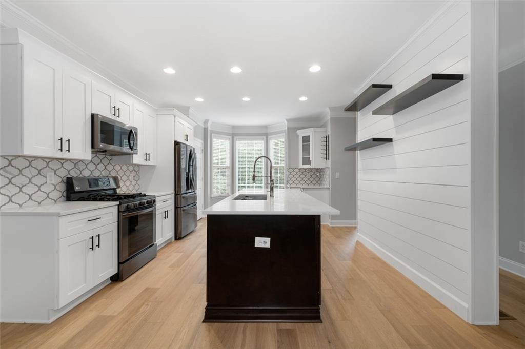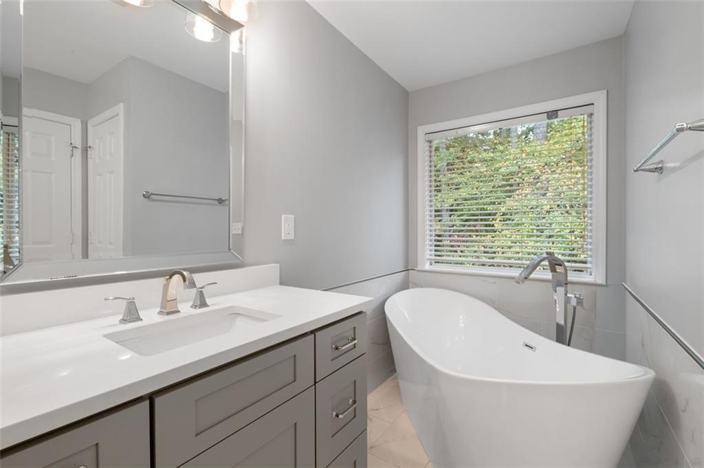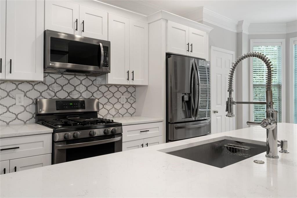Truly a neighborhood gem! This stunning, newly renovated tri-level townhome is tucked away at the end of the desirable, privately gated Cambridge community. The home features 3 spacious bedrooms and 3.5 baths. The main level offers an open floor plan with a large kitchen island featuring double-sided cabinetry, granite countertops, a tile backsplash, and stainless steel appliances. The bright and airy family room includes a fireplace and a comfortable dining area - perfect for entertaining. Upstairs, you'll find generously sized bedrooms with tray ceilings and custom closet organizers. The primary suite includes a spa-like bathroom with dual vanities, a freestanding tub, and a walk-in shower. Additional highlights include a new roof, new flooring, and fresh interior paint. Enjoy a wooded backyard offering both privacy and natural beauty. Located just minutes from major highways, Perimeter Mall, Avalon, and Downtown Roswell, this home offers the best of convenience and lifestyle. Take in the stunning views of the Chattahoochee River, explore nearby hiking trails, water sports, and playgrounds at Morgan Falls Overlook Park or enjoy a round of golf at Steel Canyon Golf Club, both within walking distance.