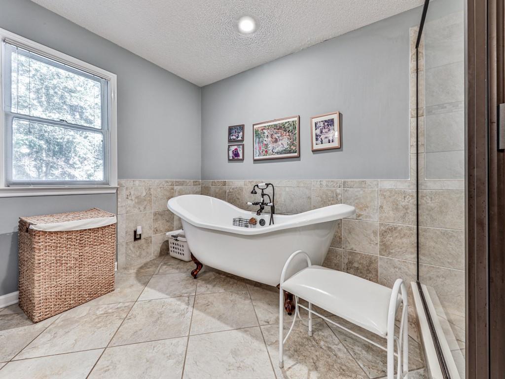 Nestled on over 2 acres of wooded privacy, this solid and inviting home offers the perfect blend of space, charm, and convenience. The open floor plan flows beautifully, starting with a warm and welcoming kitchen featuring solid wood cabinetry, stainless steel appliances, and granite countertops. A huge breakfast/dining room provides plenty of space for gatherings, while the massive family room impresses with its gas log fireplace, soaring vaulted ceilings, and access to a private back deck overlooking the serene setting. Upstairs, you’ll find a versatile loft/office and a stunning master retreat with its own private balcony. The spa-like en-suite bath features a clawfoot soaking tub, tiled walk-in shower, and double vanity. Two additional spacious bedrooms are located on the main level along with a covered, screened porch perfect for enjoying the outdoors year-round. The finished basement expands your living options with a large common area, additional bedroom and full bath! Outside, a fenced backyard provides plenty of room to roam, while the long winding driveway crosses a tranquil creek, setting the tone for this peaceful retreat. Located just seconds from Milton, Alpharetta, and Cumming parks, shopping, and activities, this home is a true showstopper—offering the best of privacy, space, and location.