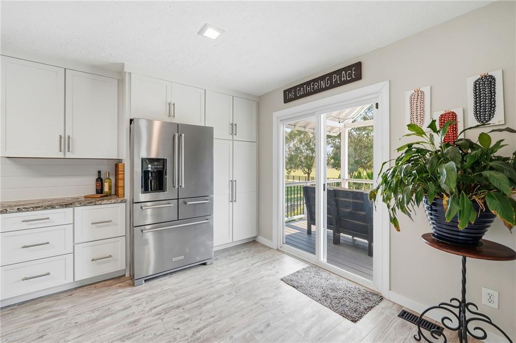 - KitchenCabinets White, Solid Surface Counters, View to Family Room
