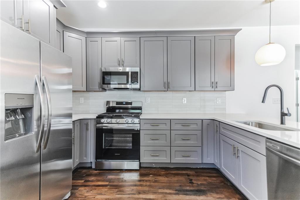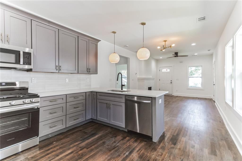 Welcome home to this renovated home conveniently located near Morehouse College, near Mercedes Benz Stadium, and minutes from the highway. Only a single tenant lived here before, the space is still practically new. This home consists of an all-new HVAC unit, plumbing, electrical wiring, appliances (washer / dryer, dishwasher etc.), flooring, windows, and a fresh coat of paint. Walk into a fully the open layout living room and updated kitchen with stainless steel appliances (including washer and dryer), quartz countertops. The home features classic components of the previous home's character with a dual wood-burning fireplace. Throughout the home, you'll notice sleek neutral and warm fixtures that add a modern finish to the home. The spacious rooms with new windows allow for great natural lighting to come in all around the home. The master bedroom has a giant walk in closet and spacious bathroom with a large shower. All bathrooms have been beautifully tiled adding an elegant touch to both. Make your way to the backyard and you'll find yourself on a spaciously built deck and a view of the large fenced-in backyard. Property has security system running, please call before touring!