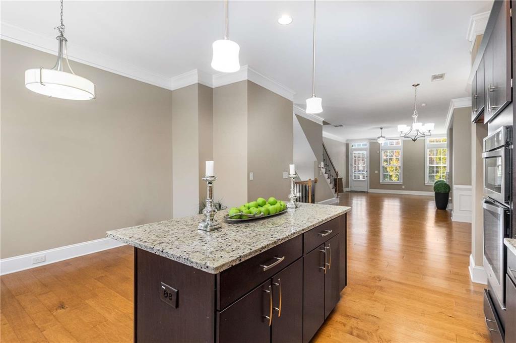 Experience elevated living in this stunning 3-bedroom, 3.5-bath luxury townhome located in the exclusive gated Gramercy community, perfectly situated in the highly rated Austin Elementary school district and just one mile north of the Perimeter. Built by Ashton Woods in the newer section of the community on a rare premium lot close to the pool, In front of the Home are a lot of free parking spaces and Marta is only 4 minutes away.. Enjoy an open floor plan with hardwood floors throughout, a chef-inspired kitchen with light granite countertops, high-end stainless steel appliances, a large island, and a butler’s pantry leading to the formal dining room. The spacious family room with a fireplace flows into a bright Dining Area, Kitchen, Breakfast Area and then the private deck.. Upstairs, the expansive primary suite includes a sitting area, spa-like bathroom with dual vanities, a soaking tub, separate shower, and a large walk-in closet, while the secondary bedroom, full bath, and laundry room offer added convenience. The terrace level features a versatile flex space, a third bedroom with full bath, and access to a two-car garage. With walkability to over 20 restaurants, Perimeter Mall, MARTA, and top-tier shopping and dining, plus easy access to major highways and intown Atlanta, this exceptional townhome offers sophisticated living with every amenity right at your doorstep.