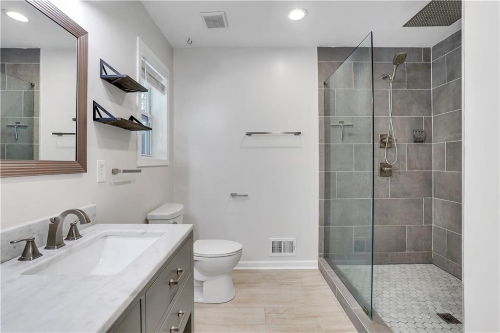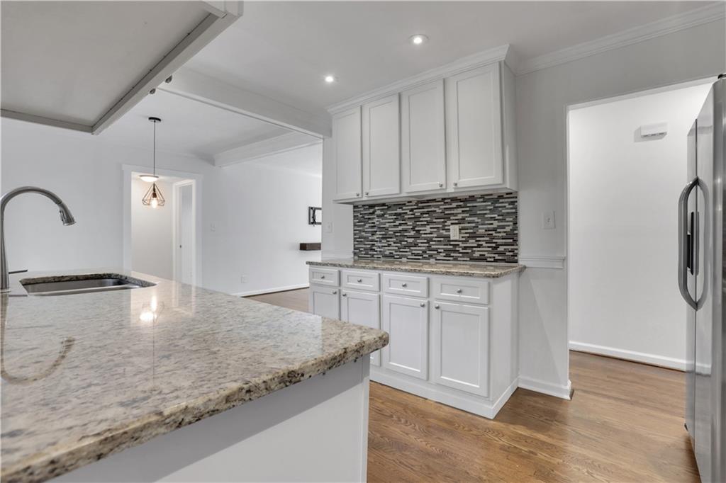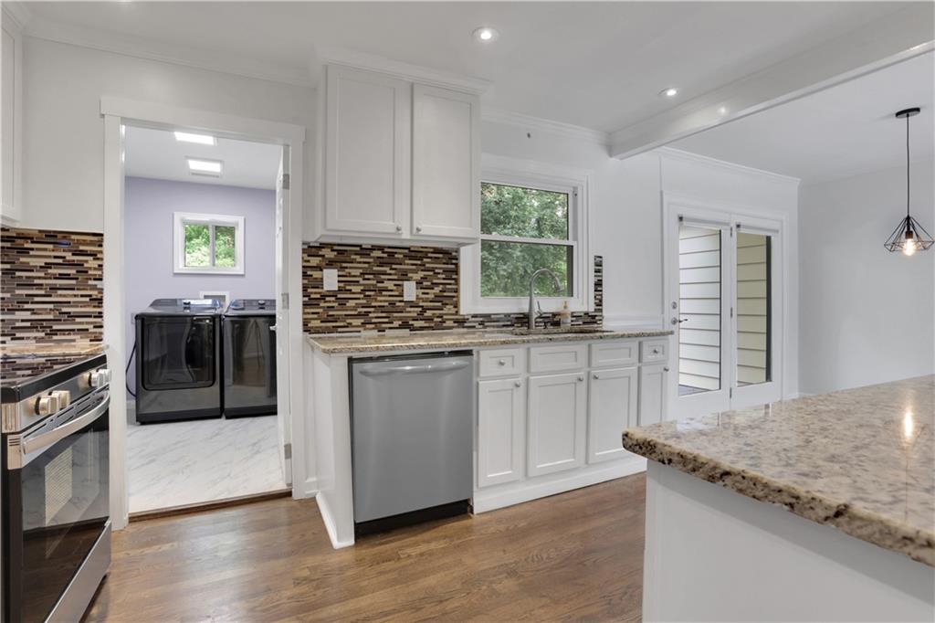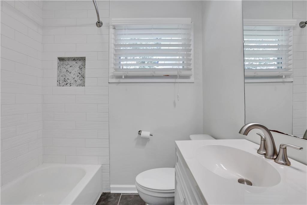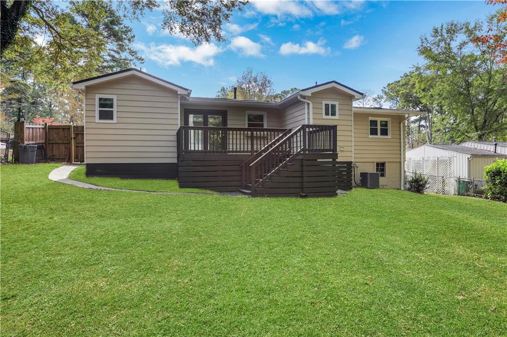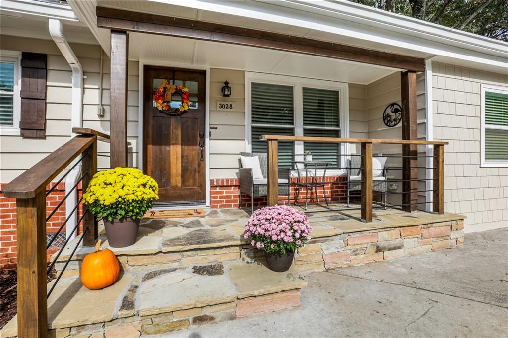 Welcome to 3038 Flamingo Drive - a lovingly updated 4 bedroom, 2 bathroom mid-century ranch home in Valley Brook Estates neighborhood! Step onto the charming, expanded front porch and into a bright, inviting living room featuring beautifully refinished hardwoods and modern lighting. The timeless white kitchen boasts generous granite countertops, stainless steel appliances with a walk-in pantry and laundry room - full sized washer/dryer included. The adjacent dining area flows effortlessly onto a private back deck overlooking a serene, fenced backyard complete with a fire pit — perfect for everyday relaxation or weekend entertaining. Retreat to the luxurious primary suite, where the spa-inspired bathroom features a marble double vanity, an oversized walk-in rainfall shower, and elegant porcelain tile throughout. The secondary bath is equally stylish, with a new vanity, modern tile surround, and updated tile flooring. Practical updates give peace of mind: new interior/exterior paint (Oct 2025), roof and sheathing (Feb 2022), HVAC/heating unit (Jan 2021), driveway expansion (Sept 2020). The property includes a walk-in crawl space great for a workshop or storage, and is well-maintained with regular pest-control service. All this in a stellar intown location—just minutes to Downtown Decatur, Downtown Tucker, Emory, the CDC, and the brand-new Lula Hills mixed-use development. Easy access to 285 and all that Atlanta has to offer! Move right in and enjoy the best of mid-century charm and modern comfort!