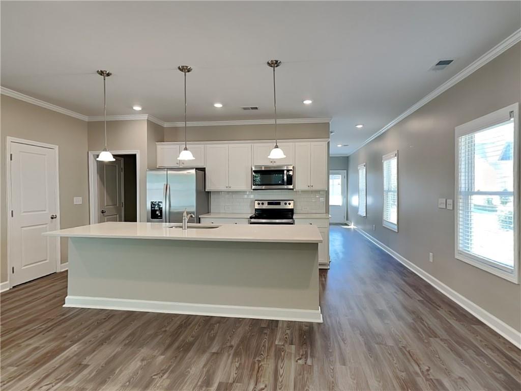 This home is professionally managed by Tricon Residential, dedicated to creating exceptional rental experiences. Featuring three bedrooms, two and one half bathrooms, and approximately 2,053 square feet, this well-maintained home offers a high standard of rental living, supported by a team that puts residents first. Tricon East Ridge is a charming single-family rental community less than seven miles from Downtown Woodstock. Enjoy virtually maintenance-free living with the conveniences of smart home technology including automatic thermostat control and keyless front door entry. Every home includes gourmet kitchens, attached two-car garages and private patios. Fully-fenced yards available on select homes.