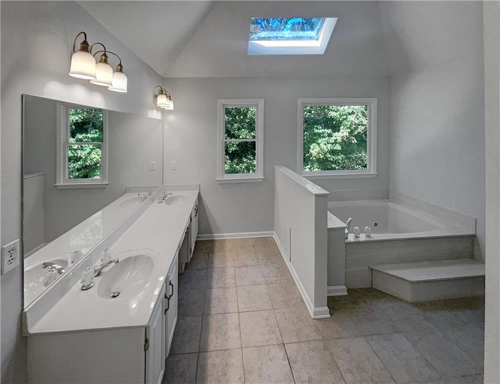 Beautiful 2-Story Home in Sought-After West Cobb Near the Avenues! This move-in ready home offers a bright, open floor plan featuring a spacious family room with a cozy fireplace—perfect for gatherings. The kitchen is equipped with solid surface countertops, stainless steel appliances, and abundant cabinet space. Upstairs, the primary suite includes a walk-in closet and a private bath with a double vanity, separate shower, and relaxing soaking tub. Generously sized secondary bedrooms provide plenty of space for everyone. Enjoy outdoor living on the deck overlooking the backyard. Additional highlights include a partial finished basement and a two-car garage. Located in a desirable neighborhood with top-rated schools and convenient access to shopping, dining, and parks.