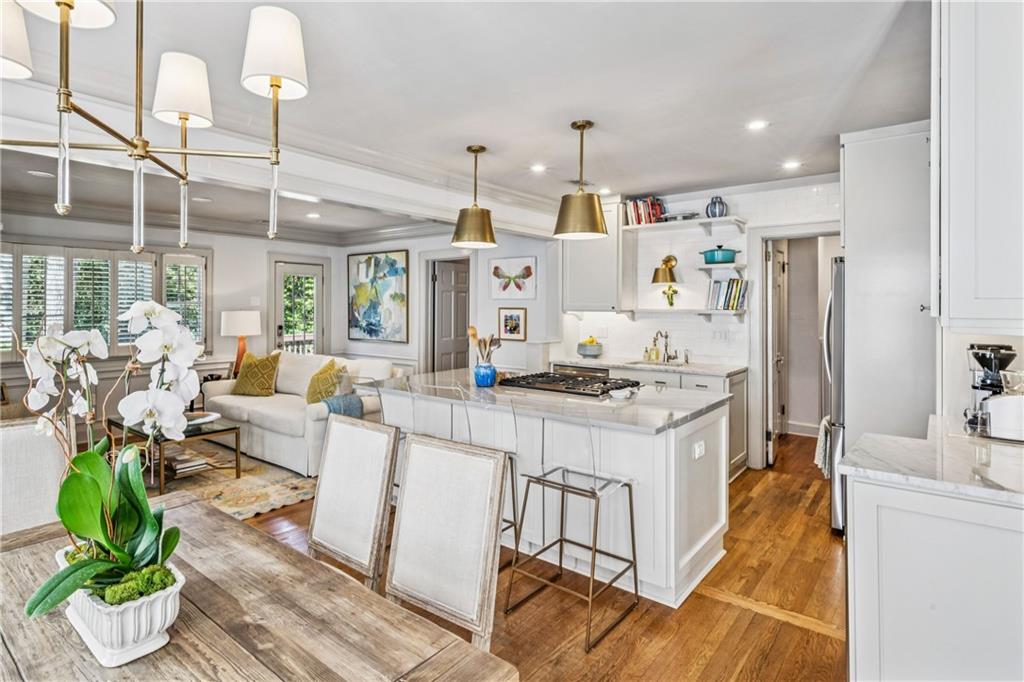 The charming Collier Hills cottage you’ve been waiting for! This beautifully renovated and meticulously maintained home blends timeless 1940s charm with sophisticated updates in one of Atlanta’s most beloved intown neighborhoods. A welcoming foyer with a classic telephone nook opens to a gracious living room featuring a wood-burning fireplace, detailed millwork, and abundant natural light. The kitchen has been completely opened and reimagined with marble countertops, stainless steel appliances, a wine fridge, wine rack, and an island with seating perfect for everyday living or entertaining. The kitchen flows seamlessly into the dining area and family room, creating a bright and connected main level that feels both elegant and inviting. A private hallway leads to the serene primary suite tucked at the rear of the home, complete with a walk-in closet, a beautifully renovated bath with marble tile and laundry room. Two additional bedrooms share an updated hall bath. Additional features include hardwood floors, plantation shutters, and generous closet space throughout. The backyard is an entertainer’s dream featuring a large deck, fire pit area, and a FINISHED detached guest house ideal for an office, gym, or creative studio. The fully fenced backyard offers privacy and plenty of space to relax or host gatherings. Brand new sod in the front yard and new landscape lighting installed! Located just steps from Tanyard Creek Park, the Northside BeltLine Trail, and Bobby Jones Golf Course, this home offers the best of Collier Hills living with walkable green spaces, an active neighborhood community, and proximity to top restaurants, schools, and shopping. This is the one you’ve been waiting for, classic Collier Hills charm with all the modern updates, multiple living spaces and a huge flat backyard.