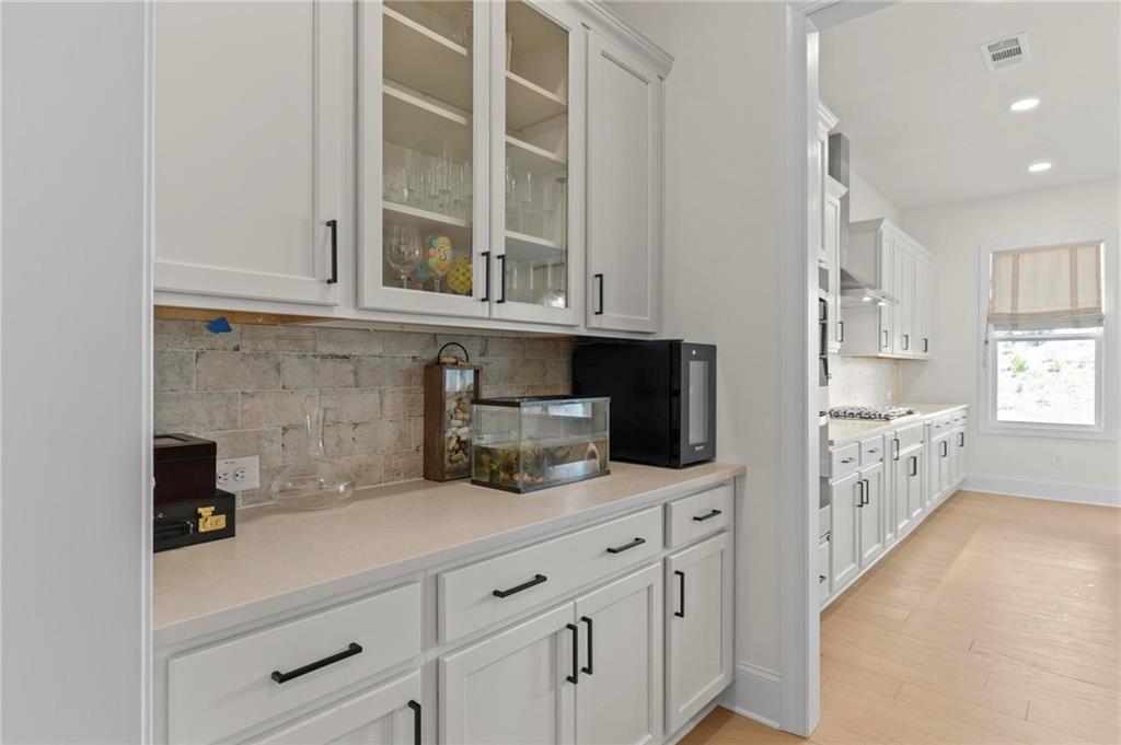 - KitchenCabinets White, Eat-in Kitchen, Kitchen Island, Pantry, View to Family Room