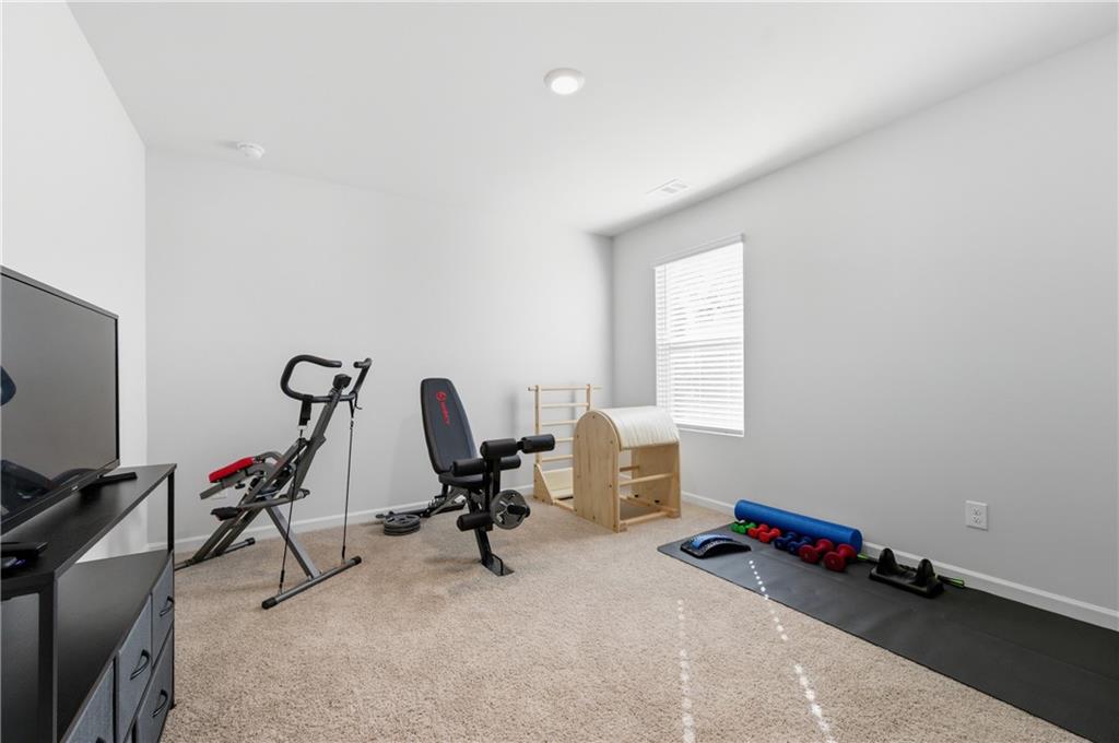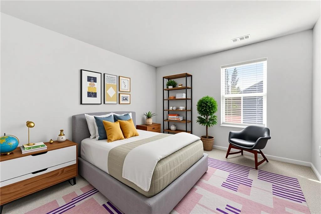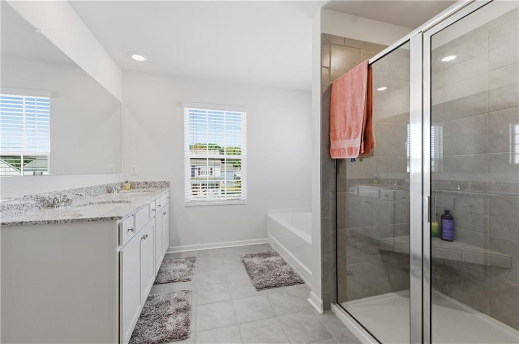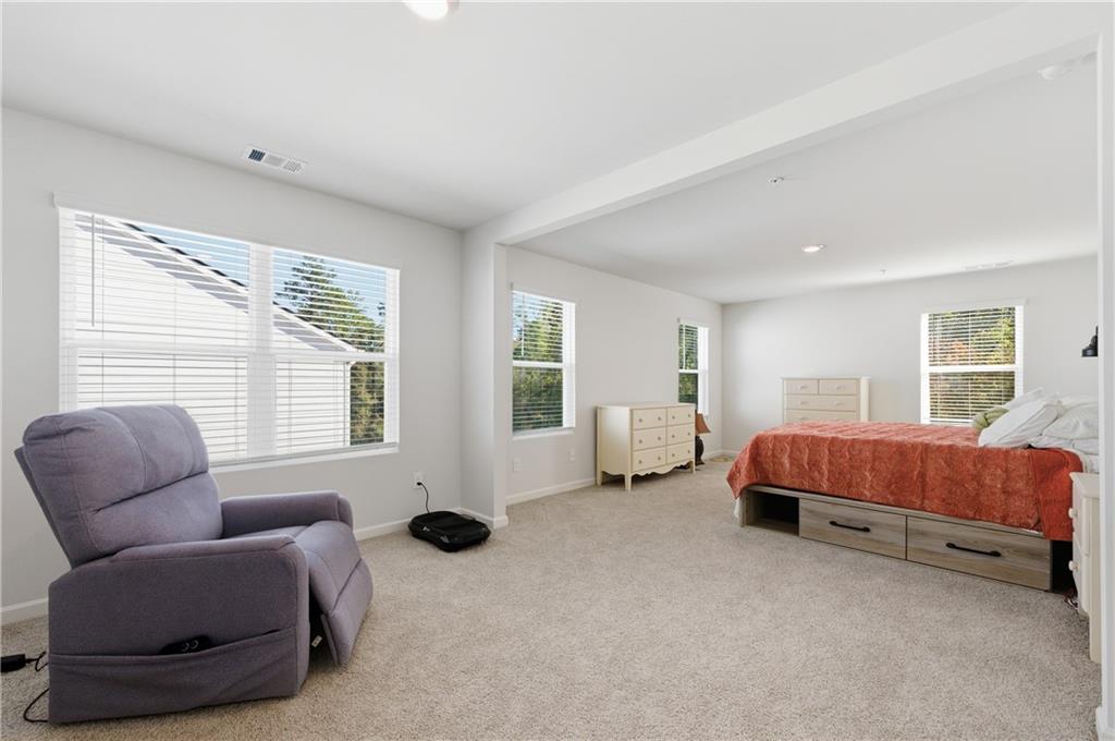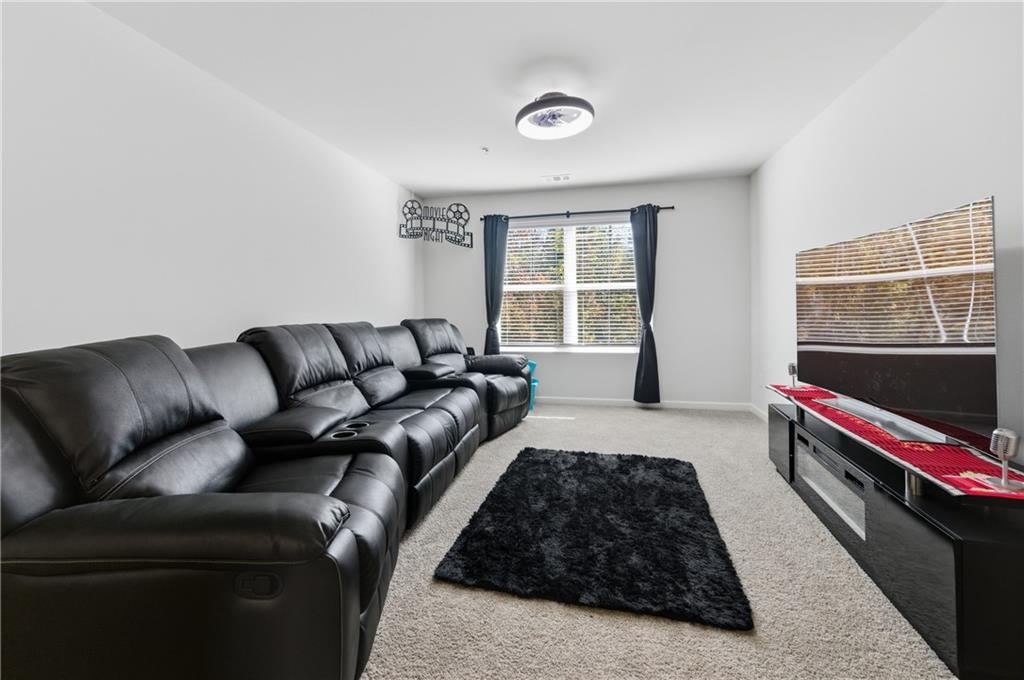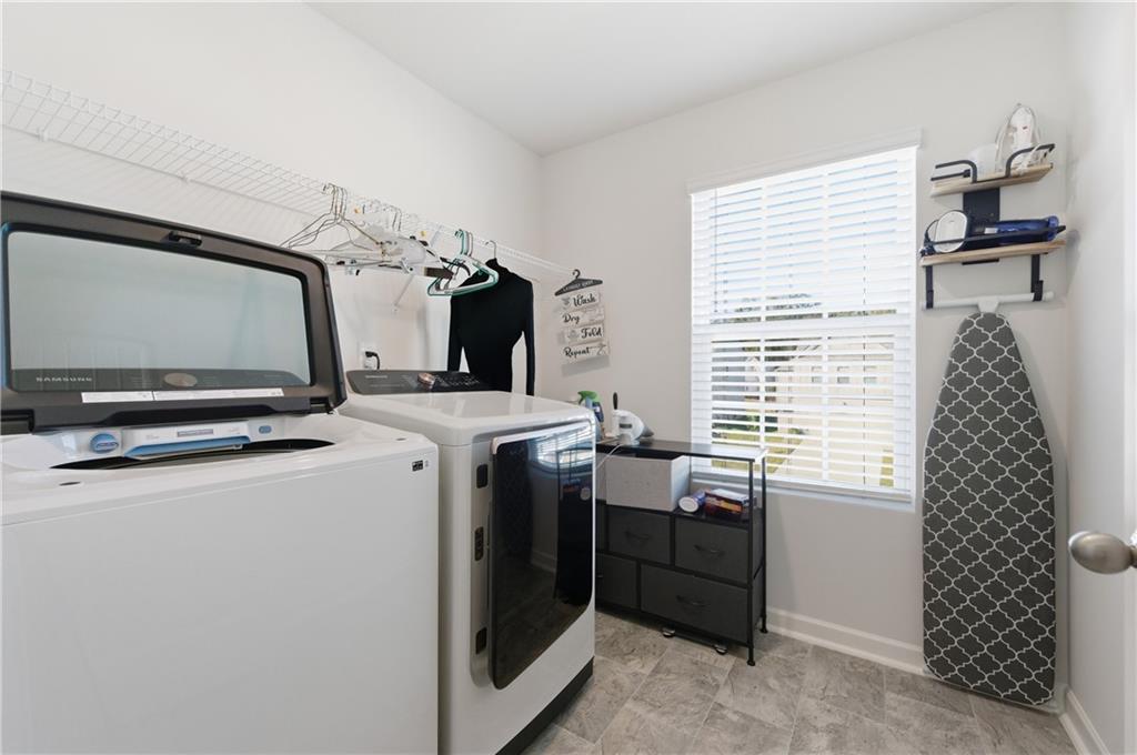 Welcome to this beautiful Halton floorplan in the sought after Oakhurst Glen community. This beautiful DR Horton 2-story resale home on a full basement, perfectly designed for modern living with stylish finishes and thoughtful upgrades throughout! The open floor plan features a spacious family room with a cozy fireplace, flowing seamlessly into the large eat-in kitchen. Enjoy cooking and entertaining with granite countertops, gray cabinetry, a tiled backsplash, center island, walk-in pantry, and a designated coffee bar or flex living area. All stainless steel appliances remain. Main-level highlights include engineered hardwood floors, a guest bedroom, and a full bath—ideal for guests or multigenerational living. Upstairs, a loft offers great flex space for a home office, media room, or play area. The oversized primary suite is a true retreat with a sitting area, dual walk-in closets, and a spa-like bath featuring granite countertops, gray cabinetry, dual sinks, a separate soaking tub, tiled shower, and tile floors. Three oversized secondary bedrooms share a hall bath with dual vanities, white cabinetry, a separate toilet/shower area, and a cultured marble countertop. A large walk-in laundry room and a deep linen closet add convenience and storage. Enjoy outdoor living on the back deck overlooking a private backyard with peaceful views of the creek area. The unfinished basement offers a blank canvas to complete your dream space and customize your landscaping. Additional features include iron stair spindles, recessed lighting, and a two-car garage on the main level. Barely over a year old, this home feels like new and is located in a community with fantastic amenities!