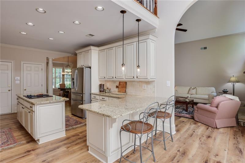 - KitchenBreakfast Room, Cabinets White, Kitchen Island, Stone Counters
