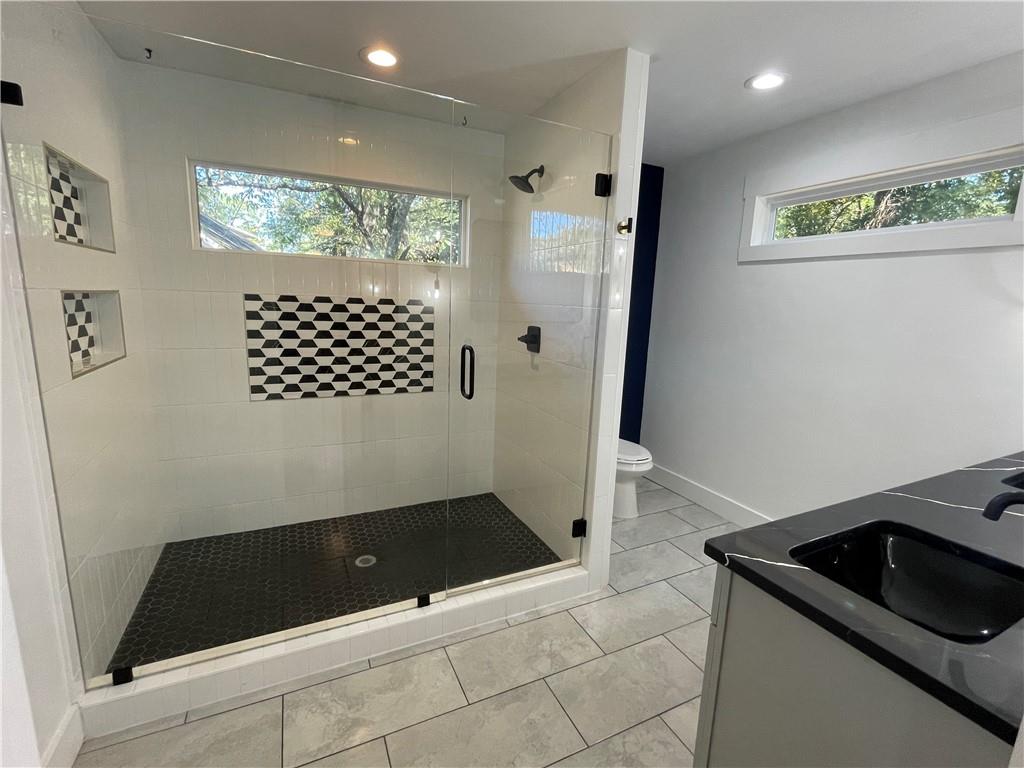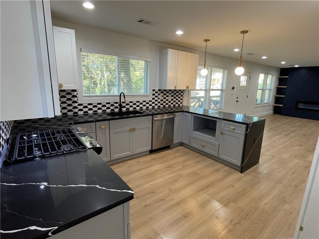 Stunning custom renovation in the heart of East Point! Featuring 3 bedrooms and 2 full baths, this home has been fully renovated from the new roof, HVAC and water heater to the all new kitchen and baths! The fully renovated chef’s kitchen has black quartz countertops, lots of storage space, stainless steel appliances and custom touches from the stove-top faucet to the designer backsplash. The open concept design features a kitchen which opens to the generous family room with an amazing custom fireplace. The owner’s suite is super spacious with a beautiful accent wall and a generous designer walk in custom closet. The Owner’s bath features designer tile, an oversized shower and double bowl vanity. Outside, enjoy the fully fenced in back yard featuring a personal fire-pit. One of a kind home and priced to sell – this one won’t last! See private remarks regarding the security system.