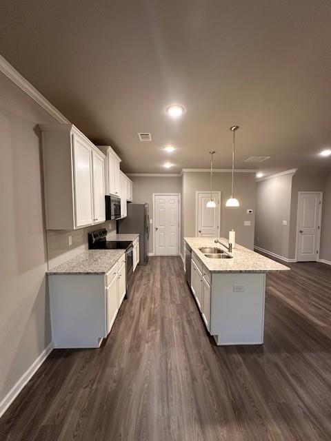 - KitchenBreakfast Bar, Cabinets White, Kitchen Island, Pantry, Stone Counters, View to Family Room