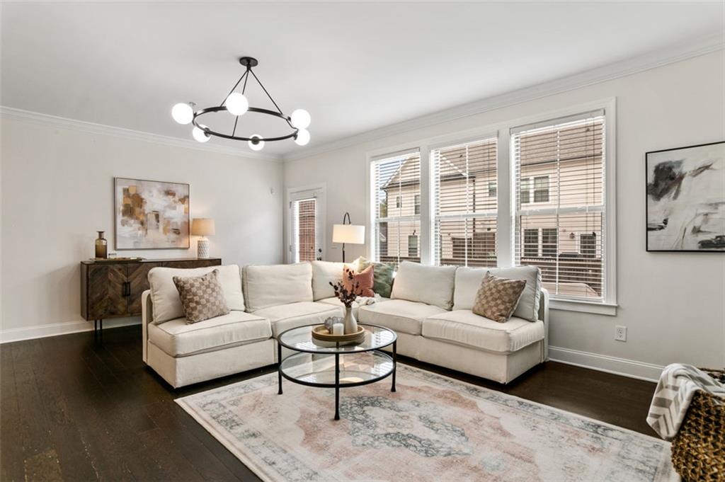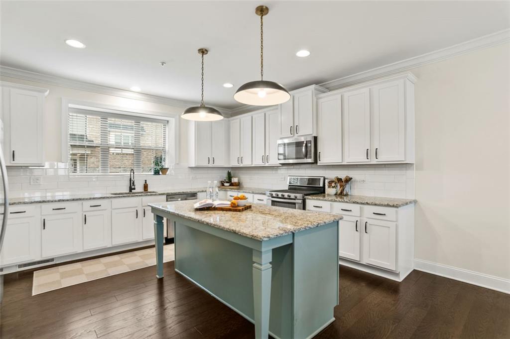 Welcome to your new home in one of the most popular areas, near Marietta Square! This bright and spacious 3-bedroom, 3.5-bath townhome has everything you’ve been looking for — an open floor plan, tons of natural light, and every bedroom has it's own bathroom! The main level has an open layout where the kitchen, dining, and family room all flow together, perfect for entertaining. You’ll love the kitchen with its granite countertops, large island, white cabinets, and stainless-steel appliances. Big windows let in plenty of sunshine, making the whole space feel light and inviting. Step outside to a private deck that’s perfect for morning coffee or evening relaxation. Upstairs, the roomy owner’s suite features a walk-in closet, double vanities, and a walk-in shower. A secondary bedroom with its own full bath and a convenient laundry room are also on this level. The lower level includes a third bedroom and full bath — ideal for guests, the in-laws or a home office and the a foyer/mud room leads out to the spacious 2 car garage with room for 2 additional cars to be in the driveway. If you have an electric vehicle, you will be all set. The Seller is leaving the charger. This community offers a pool, sidewalks, and beautifully kept grounds — all less than a mile from the shops, restaurants, and fun events at Marietta Square. If you do not want to have to worry about driving and finding a place to park at the Square, no worries, you are within walking distance! Whether you’re relaxing at home, meeting friends for dinner, or enjoying a walk through the neighborhood, you’ll love living here. If you want to go for a walk or walk the pups, but don't want to go to the Square, you have Henry Memorial Park just down the street from you!