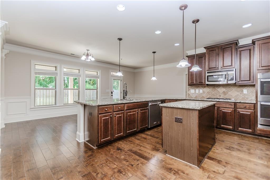 - KitchenBreakfast Room, Kitchen Island, Pantry, Cabinets Other, Stone Counters, Eat-in Kitchen, Pantry Walk-In, View to Family Room