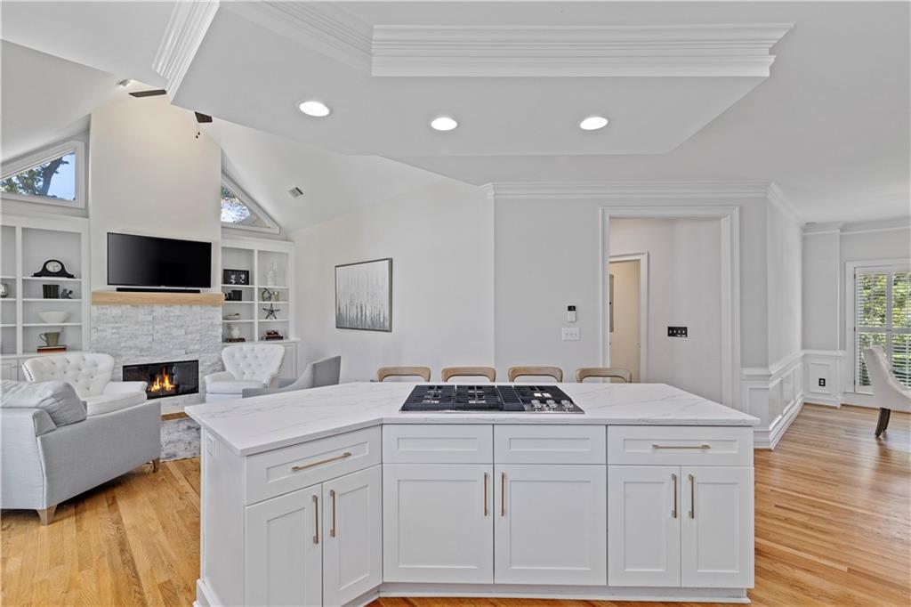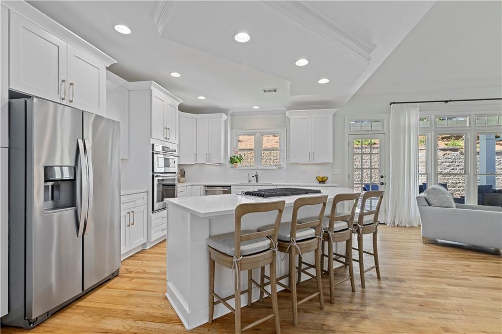 - KitchenBreakfast Bar, Breakfast Room, Cabinets White, Eat-in Kitchen, Kitchen Island, Pantry, Pantry Walk-In, Stone Counters