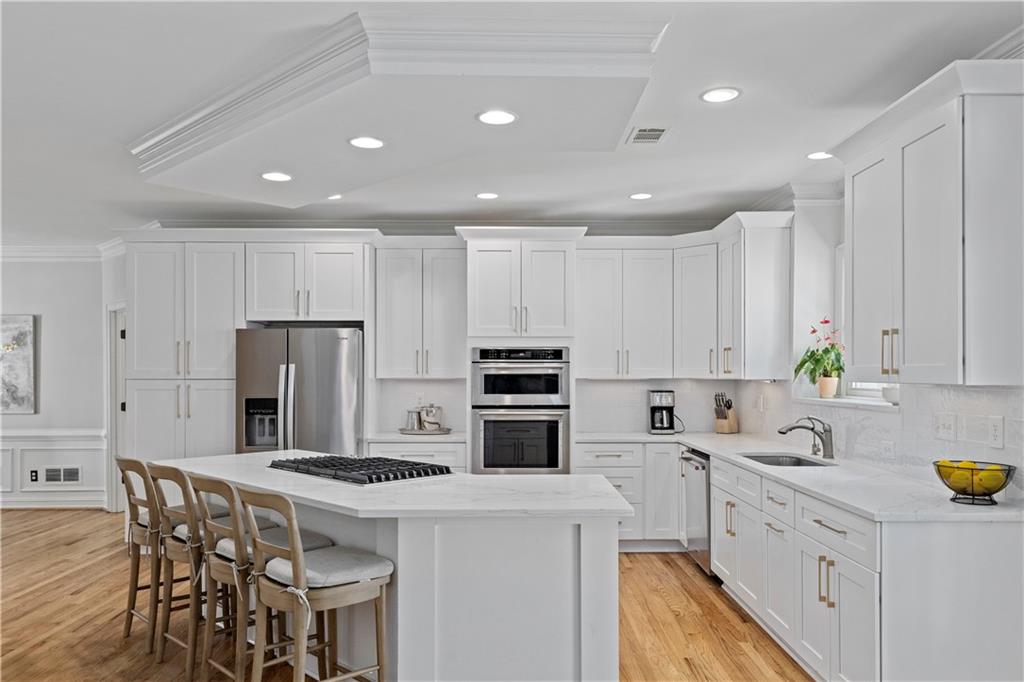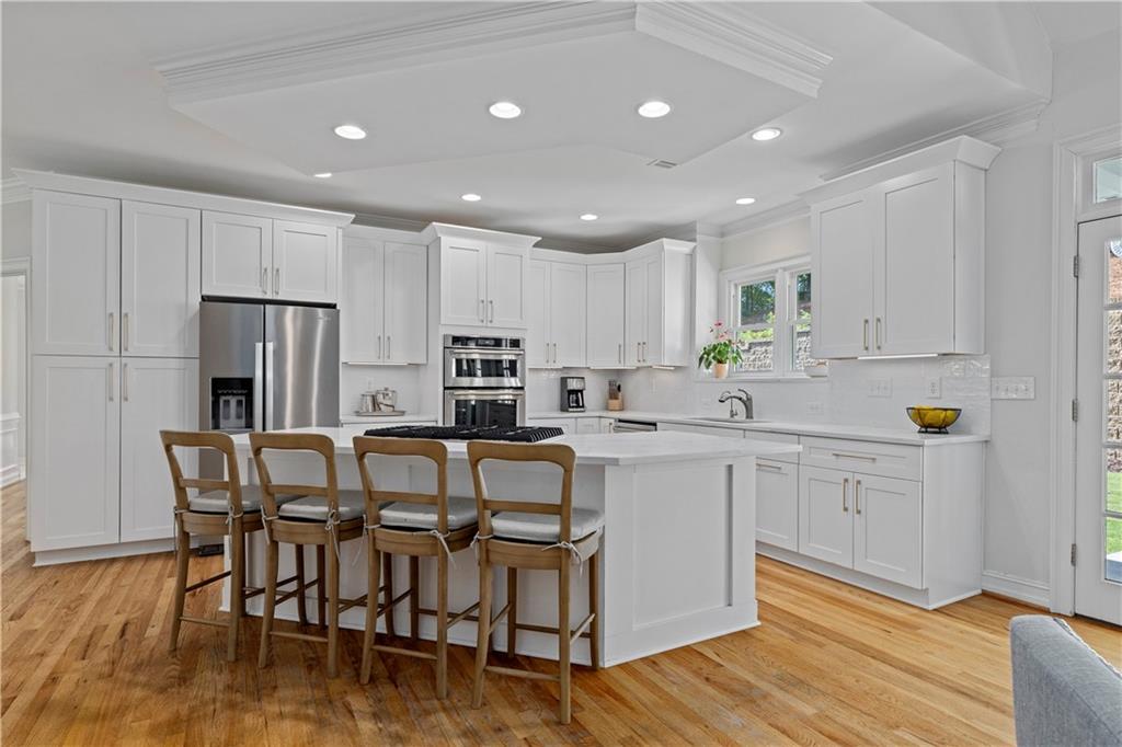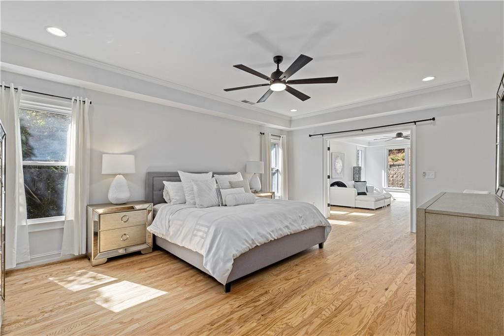 Thoughtfully renovated and expanded in 2023, and nestled on a private cul-de-sac in one of Sandy Springs’ most desirable neighborhoods with a premier location, 5800 Declaire Ct offers approximately 4,400 square feet of beautifully designed living space in the highly sought after Heards Ferry ES/Riverwood HS school district. Soaked in natural light, the main level of this hardcoat stucco home welcomes you into a grand foyer transitioning into open concept living and dining spaces. From there, french doors complete the flow into a carefully expanded and private, flat backyard space, perfect for entertaining. The home features 6 bedrooms and 4.5 bathrooms with the primary suite on main, offering his and hers walk-in closets and a separate sitting room that opens to the private backyard. Finishing out the first floor are a separate breakfast room, an updated kitchen with a keeping room featuring vaulted ceilings and a second fireplace as well as additional views into the backyard. Upstairs has all the room for modern living. With five bedrooms and three full bathrooms combined with additional flex space and ample storage, there is room for everyone. Walkable to downtown Sandy Springs and with easy accessibility to shopping, dining, schools, and three major hospital systems, this home truly has it all!