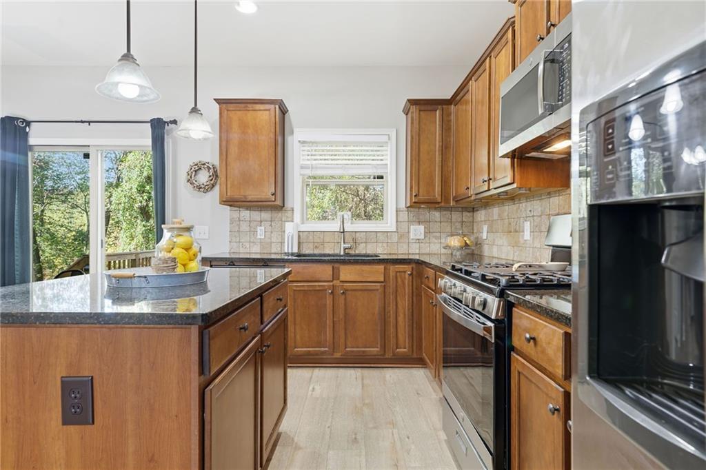 - KitchenCabinets Stain, Eat-in Kitchen, Kitchen Island, Pantry, Stone Counters