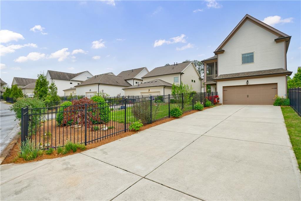 Welcome to one of the most desirable location, developed and built by the renowned Providence Group. This GATED community offers an exceptional lifestyle with top-tier amenities, including a clubhouse, resort-style pool, lighted tennis courts, a playground, and a scenic walking trail known as Central Park. The HOA provides comprehensive services, covering landscaping and irrigation for all sides of each property, as well as trash and recycling pickup. This home showcases the sought-after Raleigh floorplan, complete with a third-floor upper level and an abundance of flexible living space. The main level features a versatile flex room with an attached full bath—perfect for a home office or guest bedroom. A spacious open dining area sets the scene for both casual meals and formal entertaining. At the heart of the home, the chef’s kitchen is open to the central living space and equipped with leathered Granite countertops, double stainless steel ovens, a gas cooktop, and a bright breakfast nook. French doors lead to a covered patio, while an additional uncovered patio extends your outdoor living space. The fenced, level backyard is a rare find and is one of the largest in the community, ideal for entertaining or relaxing in privacy. The inviting family room is centered around a gas fireplace flanked by custom built-in cabinets and open shelving. A formal powder room completes the main level. Upstairs on the mid-level, you’ll find three generously sized secondary bedrooms—one with a private en-suite and two sharing an adjoining bath. The luxurious primary suite offers a true retreat, featuring a double-sided fireplace, a private sitting room, and a screened-in porch. The spa-inspired primary bath includes double vanities, a large walk-in shower, a soaking tub, and two spacious custom walk-in closets for optimal organization. The third level offers a large flex space—perfect as a media room, playroom, or additional bedroom—with a full bath and a walk-in attic for ample storage or future expansion. This home offers the ultimate combination of lifestyle, luxury, and convenience—don’t miss your opportunity to live in one of the area’s most prestigious communities.