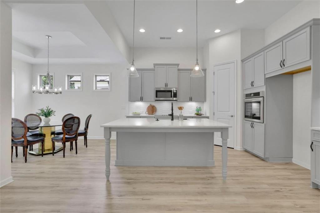 - KitchenBreakfast Room, Cabinets Other, Kitchen Island, Pantry, Solid Surface Counters, View to Family Room
