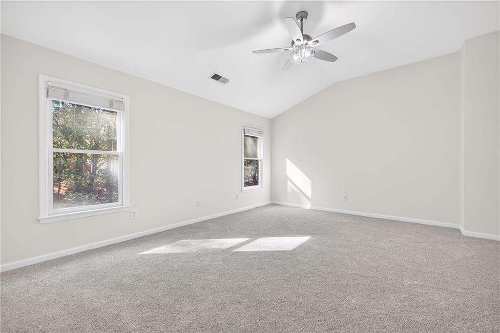 Discover relaxed elegance in this beautifully updated townhome nestled in Smyrna's upscale Vinings Estates community. This home boasts a serene setting with private, wooded views, perfect for unwinding on the new private deck. Step inside to an impressive open floor plan, centered around an enormous great room that gleams with hardwood floors. The entire home feels fresh and new, featuring fresh paint, new light fixtures, and brand new carpet throughout. The oversized master suite provides a comfortable retreat, complete with a generous master bath and a large walk-in closet. Two additional large bedrooms offer fantastic flexibility, as each features its own walk-in closet and a private, attached full bath. Living in Vinings Estates is like being on vacation every day. The community features resort-like amenities, including two clubhouses, 3 pools, a state-of-the-art fitness facility, a playground, 6 tennis courts, 6 pickleball courts, and a basketball court.This convenient location is just minutes away from Whitefield Academy, The Silver Comet Trail, abundant shopping and dining, I-285, I-75, The Battery/Truist Park, and the new Riverview Landing on the Chattahoochee.