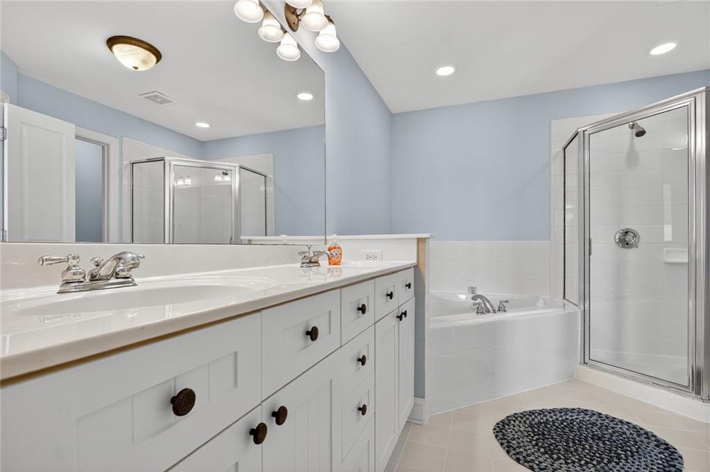 Welcome to this charming and well-maintained 3-bedroom, 2.5-bath townhome in the highly sought-after gated community of Abberley Township. This home offers a perfect blend of comfort, style, and convenience in one of Johns Creek’s premier locations. Step inside to find lovely hardwood floors, crown molding, and abundant natural light throughout the main level. The open-concept layout provides a seamless flow between the living, dining, and kitchen areas — ideal for both everyday living and entertaining. You will also find plentiful storage in the garage as well as in the various closets throughout the home. Upstairs, the spacious primary suite features a tray ceiling, walk-in closet, and private bath. Each additional bedroom has its own en-suite bathroom, including a large lower-level suite with its own patio, perfect for guests or a private home office. Enjoy outdoor living on the newly redone composite deck, surrounded by mature trees for added privacy. Recent upgrades include a new roof, HVAC, water heater, and several triple-pane windows for improved energy efficiency. The community offers swim and tennis amenities, well-kept grounds, and convenient guest parking directly across from the home. Located just minutes from top-rated schools, shopping, dining, and major highways - schedule your tour today!