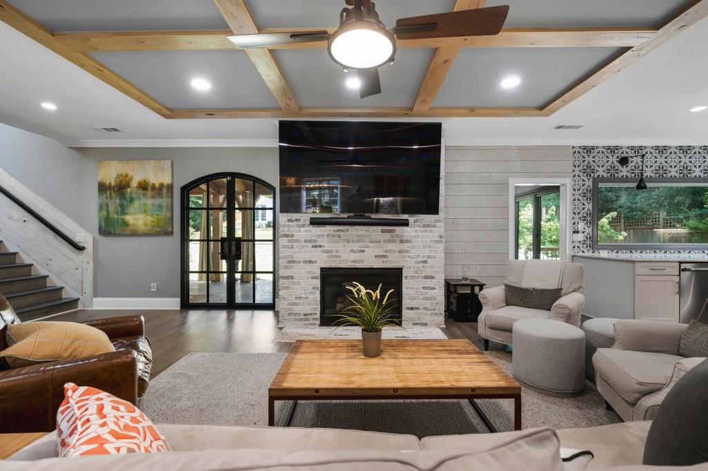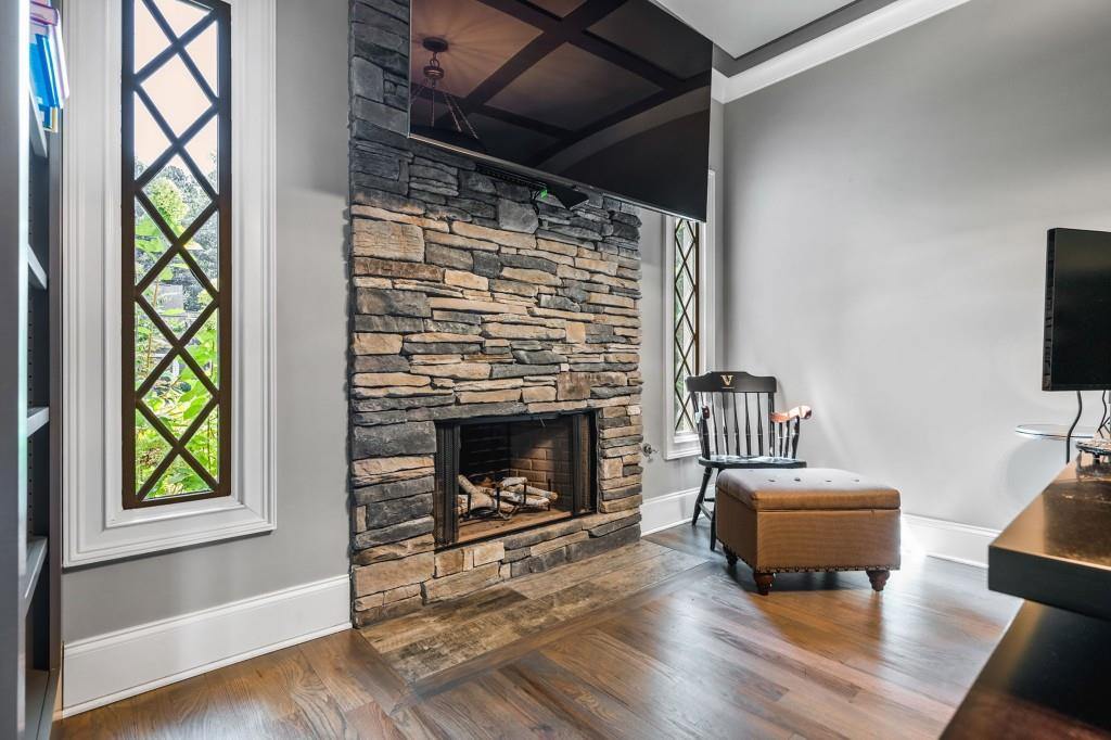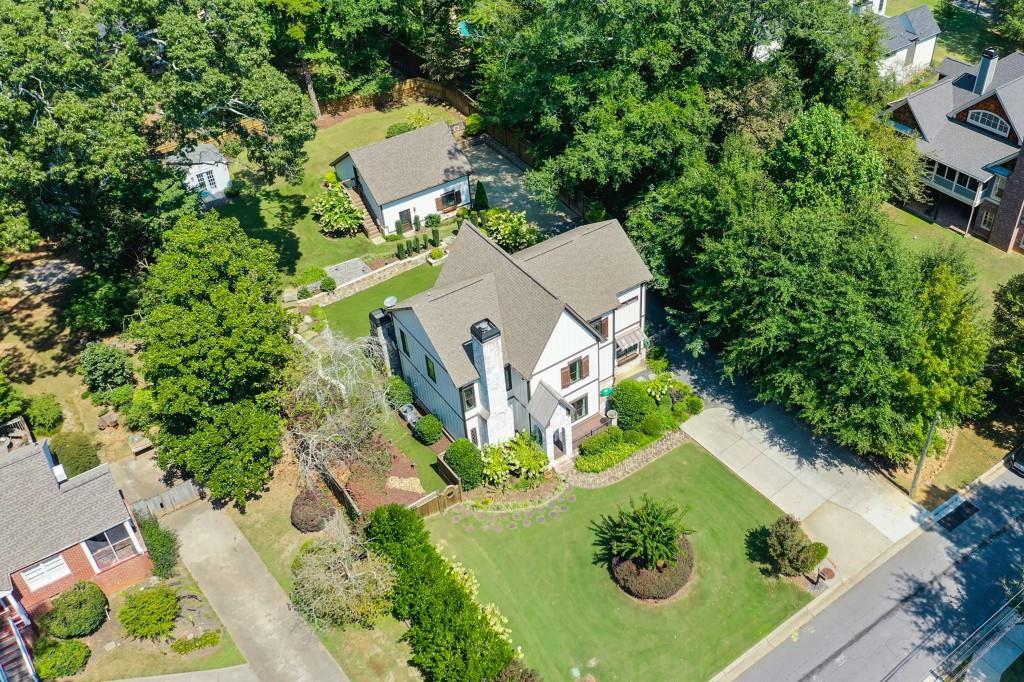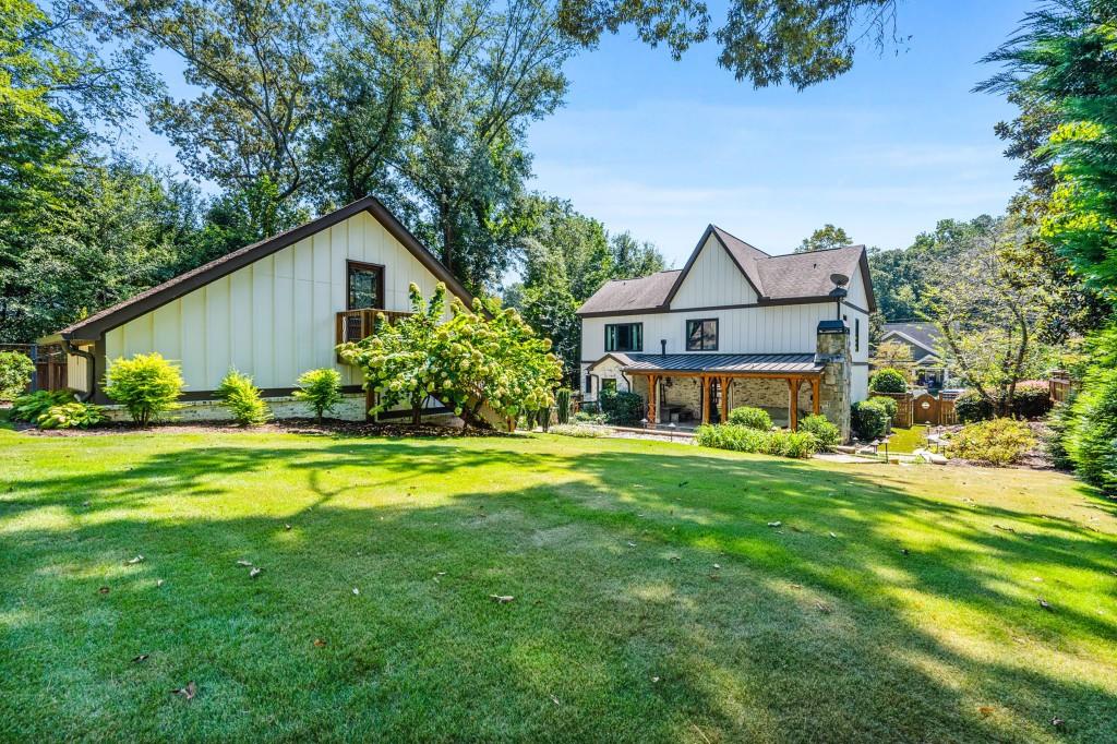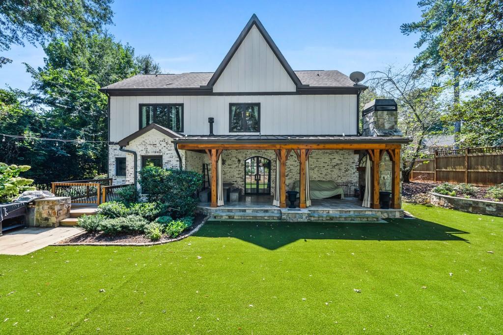 This beautiful Custom-built European Chateau-inspired Farmhouse is walking distance to Smyrna Downtown Jubilee and is perfectly set on a private tree-lined fenced lot. This charming residence offers 3,000+ square feet of Design forward inspired living. The home is the perfect blend of elegance and modern functionality & has been meticulously maintained and thoughtfully upgraded. A modern and open floor plan includes thoughtful details and is flush with natural light. The Office/Bedroom on Main includes a Fireplace, plentiful storage and full bath. The welcoming living room has a masonry fireplace, coffered ceiling and custom light fixtures. The heart of the home is the custom-designed chef's kitchen including: expansive stone island with counter seating, custom cabinetry, and stainless steel appliances. Chef's grade WOLF stove with elegant trimmed hood vent make dining and entertaining a breeze. A butler's pantry leads to the open dining room & the walk-in pantry features a coffee bar and wine cooler. The craftsman mudroom has painted cabinetry with enough space to store all necessary wardrobe items, shoes & more! The covered back patio has a masonry gas/real wood burning fireplace and regal tiled flooring that make it a perfect place to unwind year-round while enjoying the beautifully terraced/landscaped yard. The grand primary bedroom suite is located on second floor with Cathedral ceilings, large windows, his/hers walk in closet, & custom built in shelving to frame the fireplace. The exquisite primary bath suite features an oversized walk in shower with custom tile work, double vanity with stone counters, and a separate soaking tub room that is complete with crystal chandelier. The 2 additional bedrooms upstairs feature generously sized closets and en suite bathrooms. The 2 car garage features a unfinished apartment space upstairs & there is a finished Craft shed (HEATED/COOLED) at the back of the property with tons of character! Ideally located just minutes from shopping, dining, and major highways, this unique estate offers a rare opportunity to own a private retreat in one of Smyrna's most desirable areas. Every detail has been considered making this home truly one of a kind. TRULY the epitome of a smart home with Property Improvement highlights including: *-Added additional landscape lighting to the front and back yards to fully cover both with nighttime lighting + an additional transformer to handle the load -Added a hardwired smart level 2 EV charger (ChargePoint) to the garage *-Added smart app-controlled thermostats (Ecobee) x 2 *-Added smart app & voice-controlled light switches (Amazon/Alexa) controlling the master bedroom, living room, kitchen, mud room, front entry hallway, and mounted external house flood lights *-Added smart app & voice-controlled fans (Modern Forms) to the living room, master bedroom, and one upstairs bedroom *-Replaced both garage door openers with smart app-controlled garage door openers (MyQ) *-Replaced driveway gate controller with an app-enabled version + added a new keypad for external control (MyQ) *-Replaced front door and mud door locks with smart locks (August brand) and added secondary keypads to both doors *-Installed Ring Security System *-Added a whole-home surge protector to the main house + an additional surge protector in the garage *-Replaced aging water heater with a brand new Rinnai Smart (app-controlled) tankless water heater with built-in recirculation pump earlier this year -Striped stairway wallpaper and painted the walls to match the rest of the house *-Rekeyed all the external locks to one key