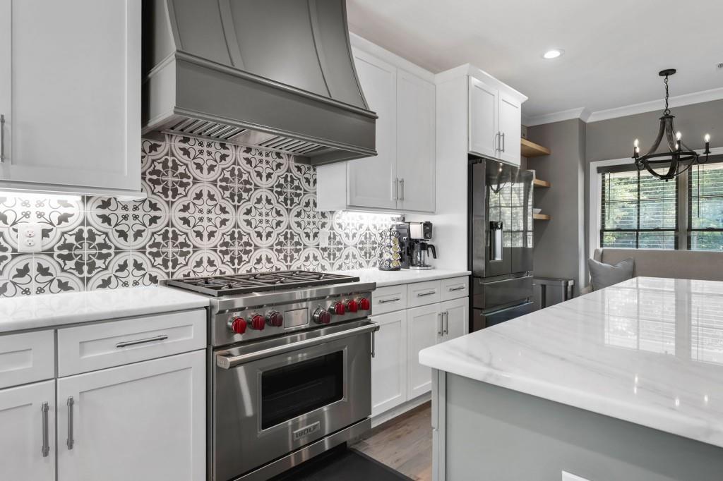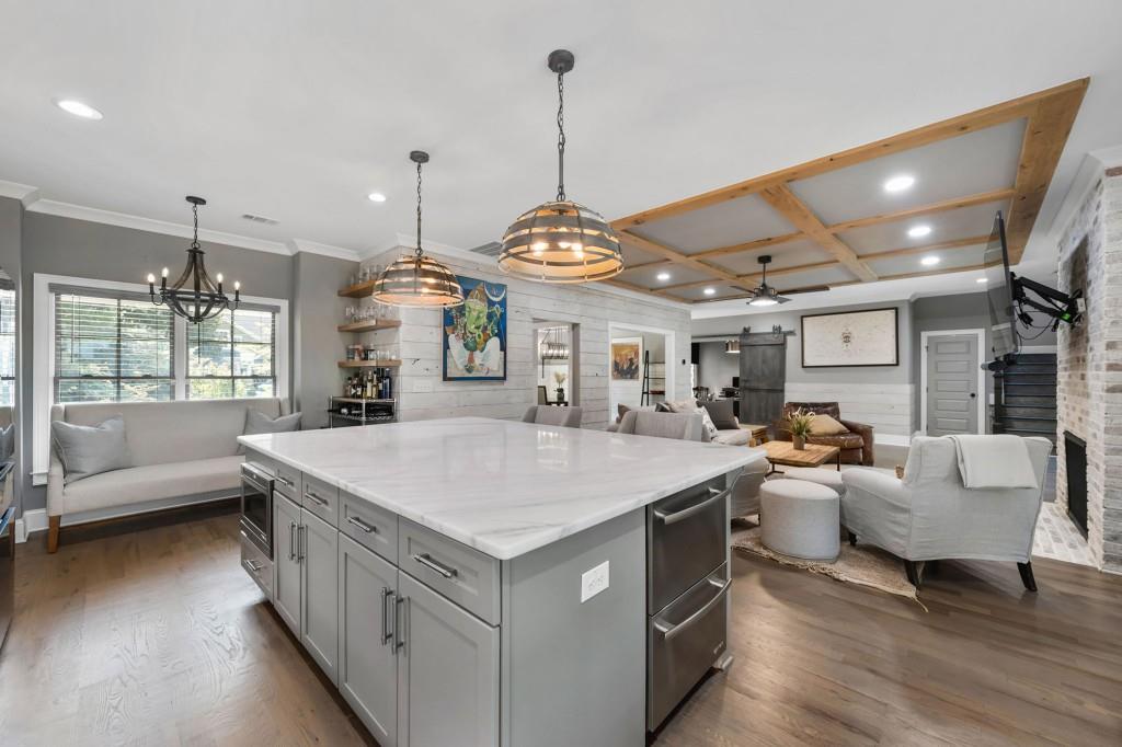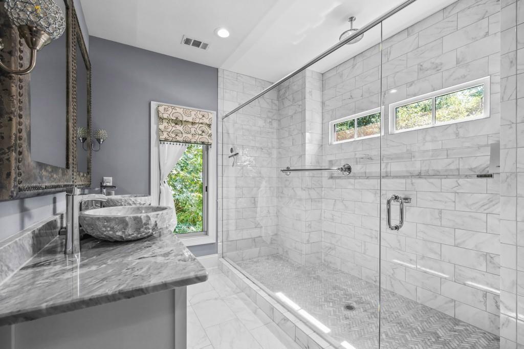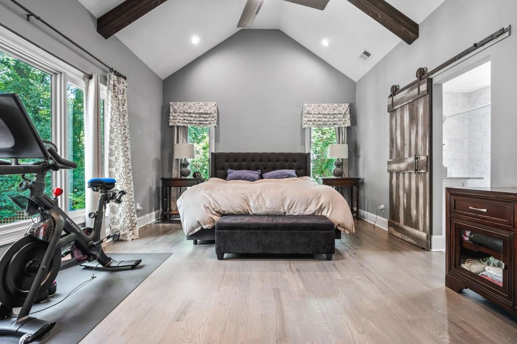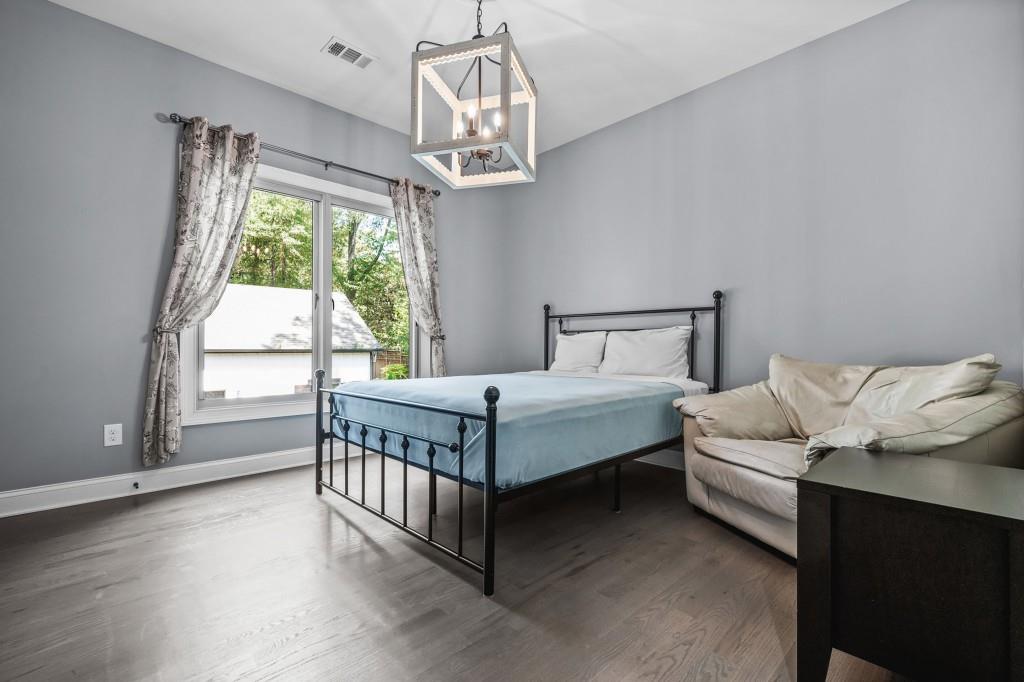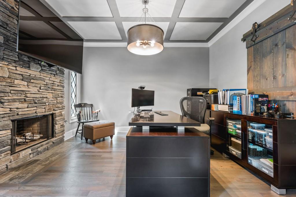 This beautiful Custom-built European Chateau-inspired Farmhouse is walking distance to Smyrna Downtown Jubilee and is perfectly set on a private tree-lined fenced lot. This charming residence offers 3,000+ square feet of Design forward inspired living. The home is the perfect blend of elegance and modern functionality & has been meticulously maintained and thoughtfully upgraded. A modern and open floor plan includes thoughtful details and is flush with natural light. The Office/Bedroom on Main includes a Fireplace, plentiful storage and full bath. The welcoming living room has a masonry fireplace, coffered ceiling and custom light fixtures. The heart of the home is the custom-designed chef's kitchen including: expansive stone island with counter seating, custom cabinetry, and stainless steel appliances. Chef's grade WOLF stove with elegant trimmed hood vent make dining and entertaining a breeze. A butler's pantry leads to the open dining room & the walk-in pantry features a coffee bar and wine cooler. The craftsman mudroom has painted cabinetry with enough space to store all necessary wardrobe items, shoes & more! The covered back patio has a masonry gas/real wood burning fireplace and regal tiled flooring that make it a perfect place to unwind year-round while enjoying the beautifully terraced/landscaped yard. The grand primary bedroom suite is located on second floor with Cathedral ceilings, large windows, his/hers walk in closet, & custom built in shelving to frame the fireplace. The exquisite primary bath suite features an oversized walk in shower with custom tile work, double vanity with stone counters, and a separate soaking tub room that is complete with crystal chandelier. The 2 additional bedrooms upstairs feature generously sized closets and en suite bathrooms. The 2 car garage features a unfinished apartment space upstairs & there is a finished Craft shed (HEATED/COOLED) at the back of the property with tons of character! Ideally located just minutes from shopping, dining, and major highways, this unique estate offers a rare opportunity to own a private retreat in one of Smyrna's most desirable areas. Every detail has been considered making this home truly one of a kind. TRULY the epitome of a smart home with Property Improvement highlights including: *-Added additional landscape lighting to the front and back yards to fully cover both with nighttime lighting + an additional transformer to handle the load -Added a hardwired smart level 2 EV charger (ChargePoint) to the garage *-Added smart app-controlled thermostats (Ecobee) x 2 *-Added smart app & voice-controlled light switches (Amazon/Alexa) controlling the master bedroom, living room, kitchen, mud room, front entry hallway, and mounted external house flood lights *-Added smart app & voice-controlled fans (Modern Forms) to the living room, master bedroom, and one upstairs bedroom *-Replaced both garage door openers with smart app-controlled garage door openers (MyQ) *-Replaced driveway gate controller with an app-enabled version + added a new keypad for external control (MyQ) *-Replaced front door and mud door locks with smart locks (August brand) and added secondary keypads to both doors *-Installed Ring Security System *-Added a whole-home surge protector to the main house + an additional surge protector in the garage *-Replaced aging water heater with a brand new Rinnai Smart (app-controlled) tankless water heater with built-in recirculation pump earlier this year -Striped stairway wallpaper and painted the walls to match the rest of the house *-Rekeyed all the external locks to one key