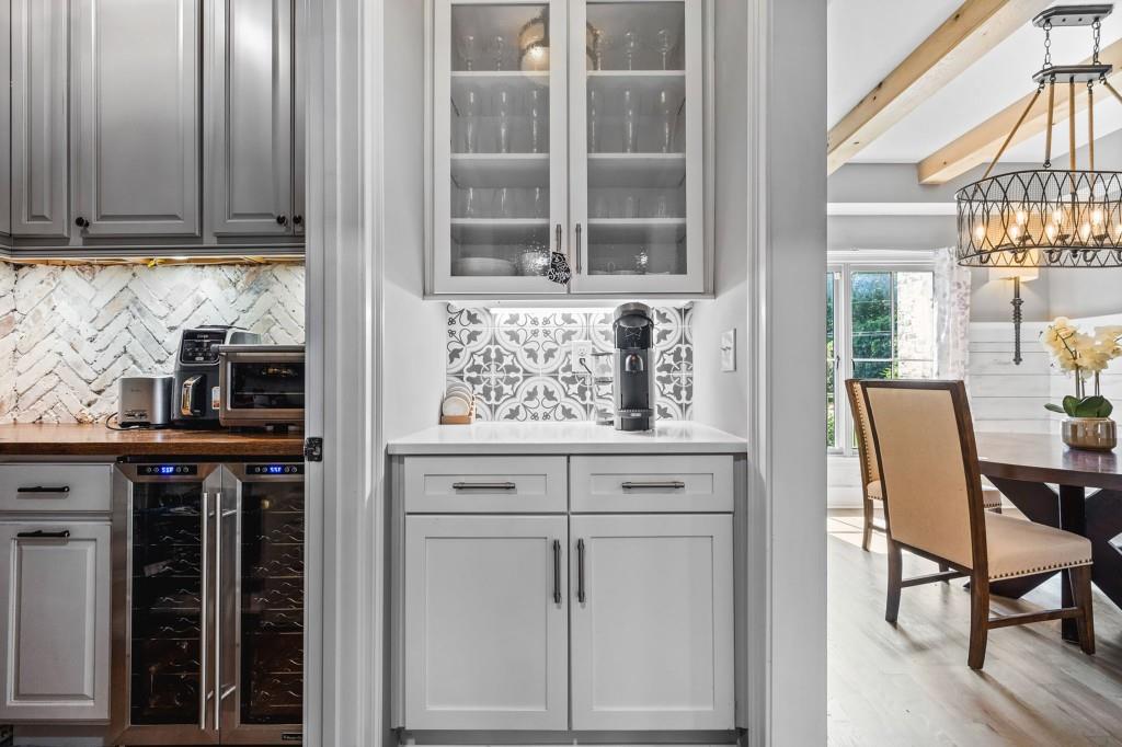 - KitchenBreakfast Bar, Cabinets White, Pantry Walk-In, Stone Counters