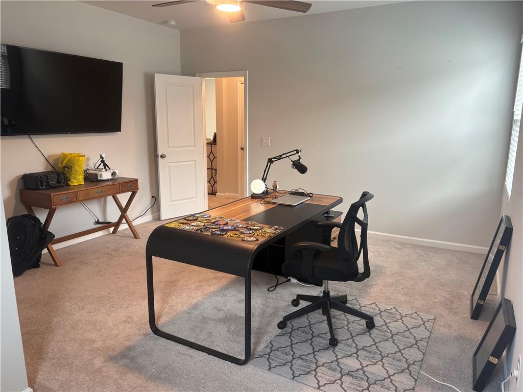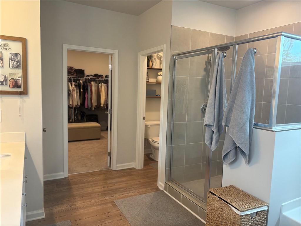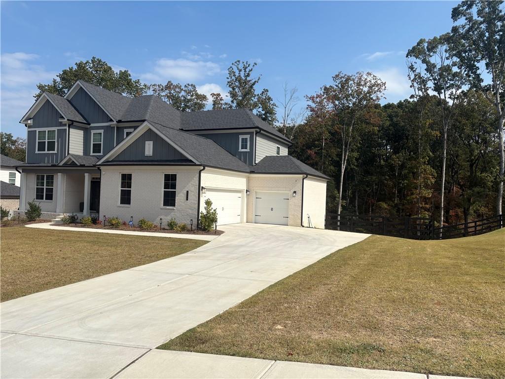 Beautiful like new home in quiet community. Inviting front porch welcomes you to this charmer. Just off the entry you will find an bright and airy office with French doors and half bath. Just down the hallway opens to a large kitchen that overlooks a spacious two story great room with oversized windows highlighting beautiful fenced backyard. Master on the main is just off the great room and is oversized with a large, private bath and huge walk in closet. Additional main level features include a custom walk in pantry with cabinetry and butcher block counters, laundry room with loads of storage and access to covered rear porch. Upstairs features large open loft, 4 bedrooms all with walk in closets, and 3 more full baths. All this and more on a full unfinished daylight basement. Located in Hall county and just minutes from Mall of GA