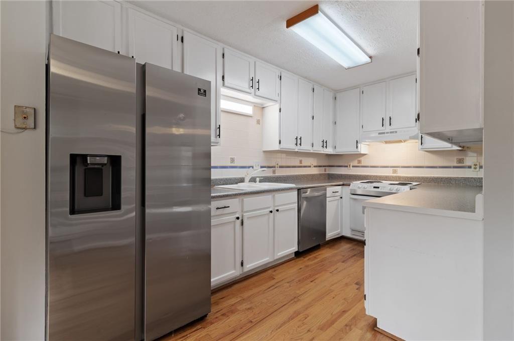 Spacious townhome/duplex tucked away in convenient, quiet and popular Carroll Manor in Sandy Springs. Rare 3 bedroom 2 1/2 bath, with a basement for great storage, workshop or flex space, AND a 2 car garage! 4 sided brick feels like a single family home, with ample square footage! Sunny family room with fireplace and gas logs, separate dining room , pretty powder bath, galley kitchen with white cabinets, cozy breakfast area, with access to 1 of 2 decks ! Upstairs primary suite with upgraded primary bath, bedroom opens to upper level deck. Secondary bedrooms are nice sized and share an upgraded hall bath. Easy working laundry area located upstairs too. Each home in Carroll Manor is a DUPLEX , only 2 homes in each building. Listing is for A side (left) only. Please do not disturb owner on B side. Recent upgrades include: ( but not limited to): Freshly painted throughout, new range hood, new upper deck, mini-split heat/cool in basement, new garbage disposal, newer kitchen refrigerator, HVAC 3 ton system, replaced furnace coil condenser, newer carpet and windows. All kitchen appliances and washer and dryer are included!! Home is located in cul-del-sac with back yard too! This unique and desirable neighborhood is awesome and is near 400, trails, parks, the Chattahoochee, shopping, and dining. Walk to Sandy Springs middle school! Easy access to main roads. Roomy floorplan flows extremely well for this 3 bedroom 2.5 bath very private feeling charmer. Optional $60 a year HOA. No HOA rental Restriction . Big Bang for the Buck!