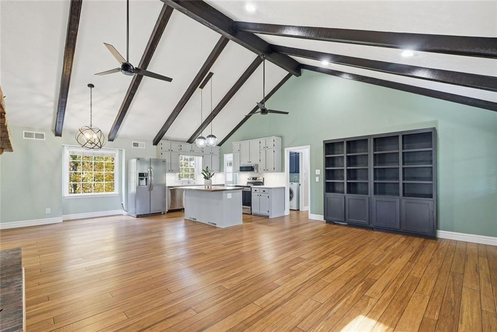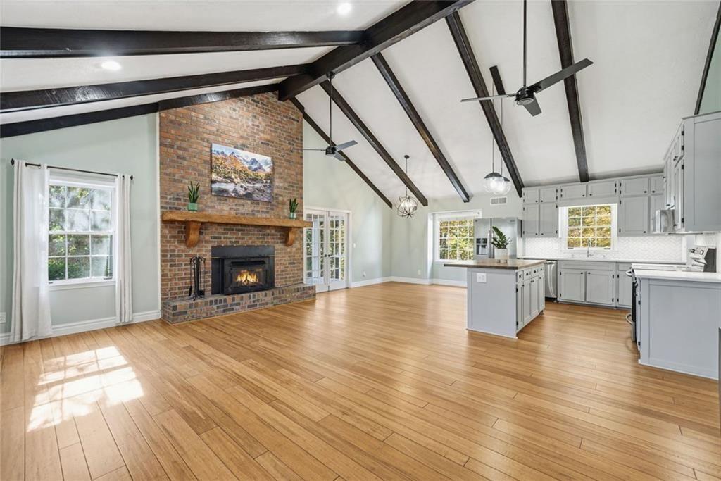 Beautifully Remodeled Ranch in Sought After Little Mountain Community Blending modern finishes with warm, inviting style, this stunning 3-bedroom, 2-bath 1,434 sq ft. ranch sits on a peaceful 1-acre lot adjacent to Hole #2 of Panola Mountain Golf Course. Thoughtfully remodeled, this move-in-ready home offers the perfect combination of comfort, privacy, and natural beauty. Inside, the open-concept living area features bamboo hardwood flooring, stained ceiling beams, and a dramatic brick fireplace extending to the vaulted ceiling. The updated kitchen boasts stainless steel appliances, quartz countertops, and a custom butcher block island ideal for cooking and entertaining. Shaker-style cabinetry continues through the kitchen, bathrooms, and laundry room for a cohesive, timeless look. Both bathrooms have been beautifully updated with new tubs, tile flooring, and stylish finishes, while the primary suite includes a shiplap accent wall and private en-suite bath. Enjoy peaceful views from the spacious screened porch with new tile flooring or relax in the large backyard overlooking the golf course. The full unfinished 986 sq ft. basement offers endless potential with natural light and exterior access perfect for a guest suite, recreation room, or rental apartment. An oversized two-car garage provides ample storage. Located next to Panola Mountain State Park and within the Arabia Mountain National Heritage Area, this home offers easy access to trails, nature, and golf, plus quick connectivity to I-675, I-20 and downtown Atlanta. Zoned for Lorraine Elementary, General Ray Davis Middle, and Heritage High. A perfect blend of modern renovation, serene surroundings, and convenience this Little Mountain gem truly has it all.