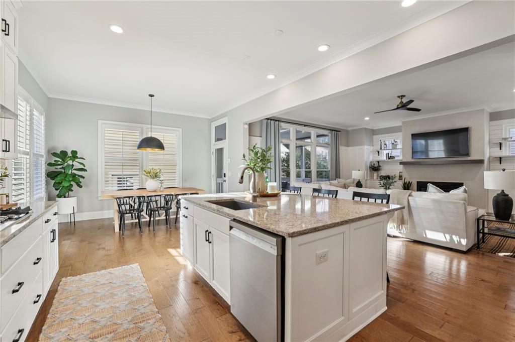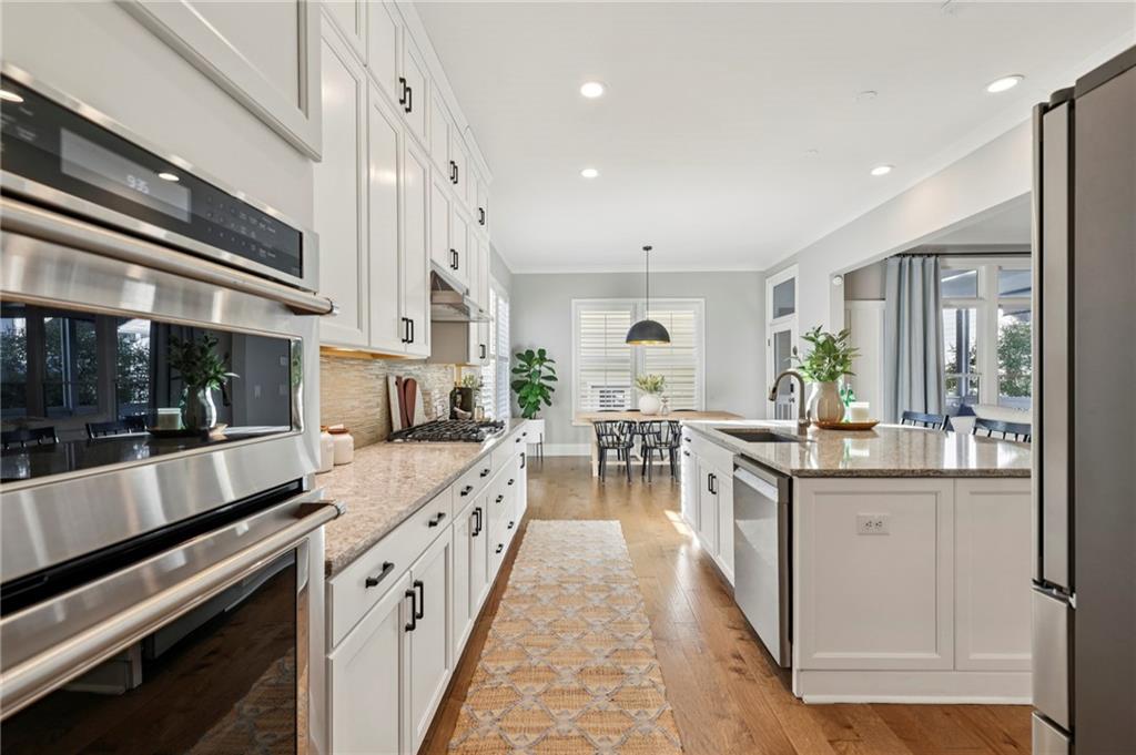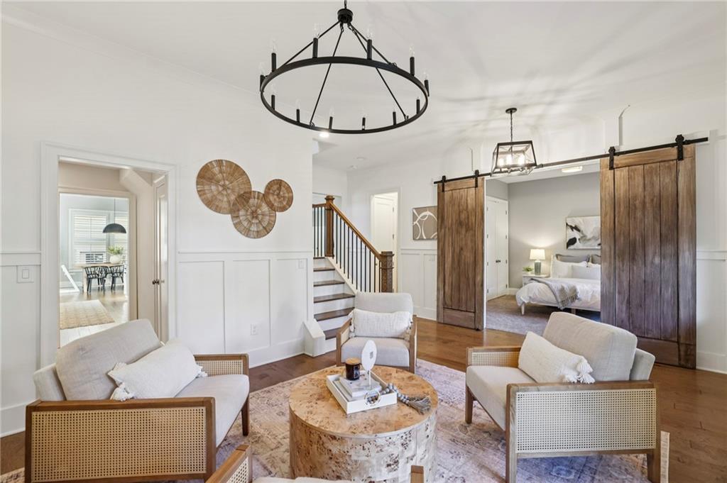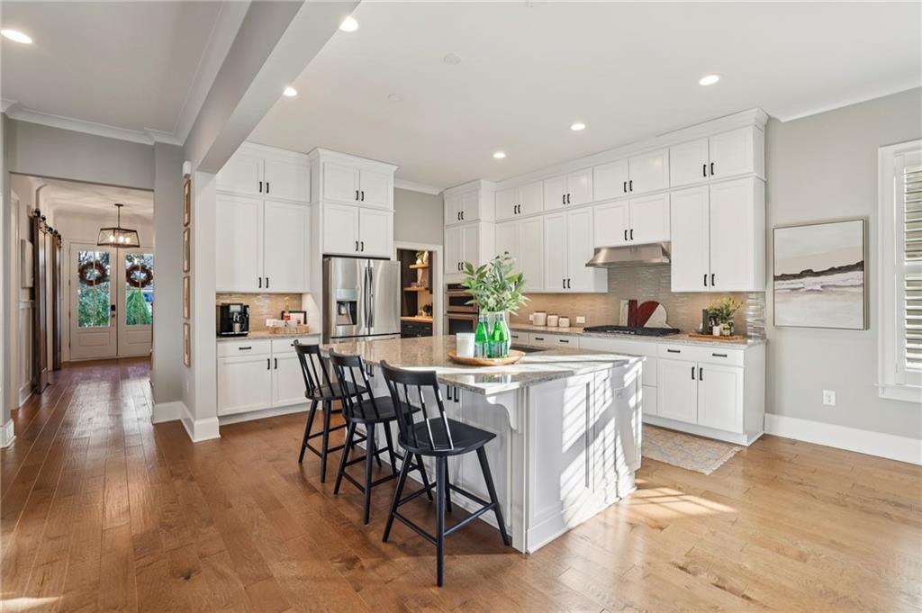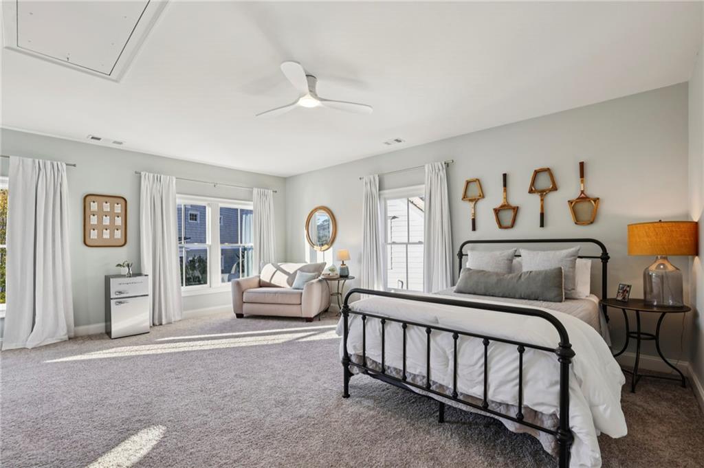 Located on a charming street in the heart of Vickery, this beautifully maintained home blends timeless design with thoughtful upgrades. The open, light-filled floor plan offers inviting living spaces, including a rocking chair front porch and a screened porch with a gas fireplace and built-in grill area, ideal for relaxing or entertaining. The finished carriage house provides flexible space for a sixth bedroom, guest suite, media room, or private office. Inside the main home, there are five bedrooms, including one on the main level with a full bath. Elegant trim details, hardwood floors on the main level and upstairs hallway, and new designer light fixtures throughout create a warm and refined feel. The bright, open kitchen features floor-to-ceiling cabinetry, a walk-in pantry, quartz countertops, a spacious island, and a custom butler’s pantry with a beverage cooler, open shelving, herringbone backsplash, and natural wood counters. The renovated primary bathroom offers a spa-like retreat. The top floor includes approximately 435 square feet of unfinished space, already plumbed for a full bath and ready for future customization. Vickery offers a vibrant community lifestyle with about 75 acres of green space, eight tennis courts, a pool with cabanas, two ponds for fishing, walking trails, playgrounds, basketball courts, and open fields for recreation. Residents enjoy a variety of community events, including a farmers market, movie nights, and seasonal festivals at nearby Vickery Village. Ideally located in South Forsyth, the home is close to shopping, restaurants, Northside Hospital, medical facilities, and the Big Creek Greenway with miles of paved trails for walking and biking. Easy access to GA 400 provides a quick route to both Atlanta and North Georgia.