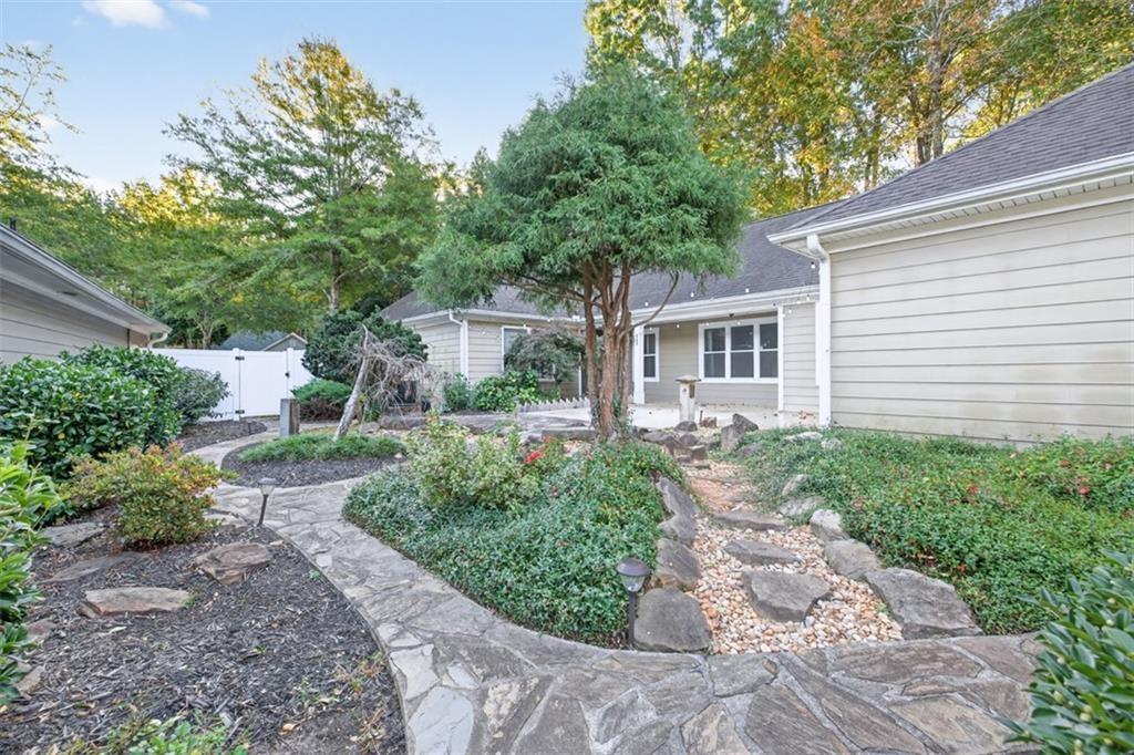 Located in Heron Bay Golf Country Club, south Atlanta's premiere resort-style community, this charming craftsman style home is situated on the course's 9th fairway! This very unique and highly sought after plan features three bedrooms and three baths, with the owner's ensuite and a second bedroom and bath being located in the main area of the home from the front porch, you'll enter into the private courtyard via a wrought iron gate, providing a unique and intriguing feature to the elevation. To your left is the ever-popular CASITA featuring a bedroom w/private bath overlooking the courtyard. This incredible feature offers lots of options, as the casita is private from the rest of the house and can be used as a teen/in-law suite, an office, a man cave, or for guests who come for an extended stay! So many options for this multi-functional area! The oversized Chattahoochee pebble stone patio in the private courtyard offers an inviting setting for private gatherings, or simply for enjoying the serenity and privacy of the outdoors in your own space! There are also stone walkways in the courtyard so that you can easily access the front or back yards. Just a few steps ahead, you will enter into the foyer of the main home, featuring a spacious family room/dining room with electric fireplace that opens up into the tiled sunroom with lots of windows and terrific views of the beautiful golf course! Off the sunroom, there is also a patio. The kitchen has granite countertops and stainless appliances (gas stove), a raised gathering bar and a breakfast nook. Pantry. In addition to the tiled sunroom, there is tile in all wet areas, including bathrooms, kitchen, and laundry room. This home is designed to provide privacy for all when retiring. The oversized owner's suite spans the left side of the house, with the sitting area/office nook overlooking the soothing views of the golf course. There's also a French door from the bedroom to the private courtyard. Then, on the other side of the kitchen, there's the secondary bedroom and bath. In addition to all that this home has to offer, the community amenities are unparalleled. The resort-style community offers an aquatic center with splash pool and dual slides, mushroom sprinklers, a zero entry pool for the kiddies, and a junior Olympic size swimming pool just past the front entrance to the community the convenience and enjoyment of our residents, there's also a smaller, intimate pool more centrally located in the community. Organized teams with plenty of tennis and pickleball courts. There's also a Dog Park and a Sports Park, in addition to nature trails throughout the community. Our premiere amenity is quite probably the Lakeview Park and pavilion, situated on the 1100 acre Cole Reservoir - perfect for kayaks, canoes, and non-gas powered watercraft. An added feature is that the Cottages & Villas communities include mowing, edging, trimming, exterior sprinkler, trash, and termite bond, not to forget the private clubhouse where there are events for the C&V residents that are in addition to those sponsored by the Master Association. There's so much to choose from - and it's all included in your assessments.