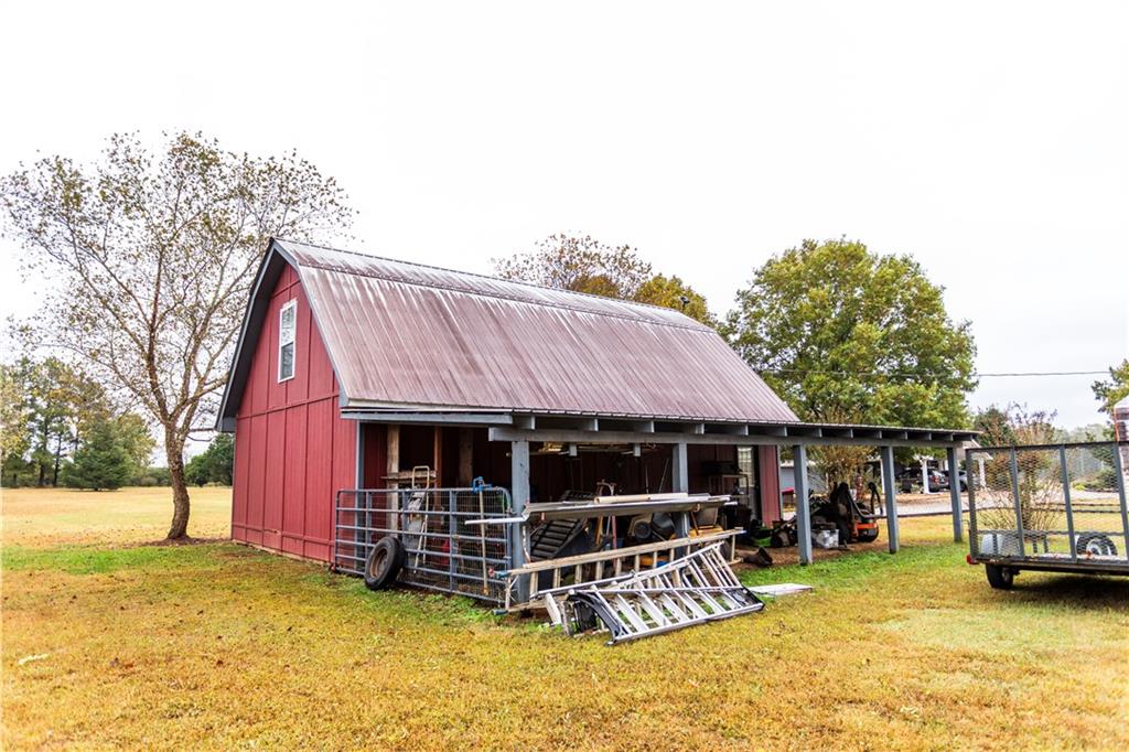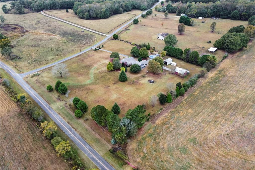 Check out this property on 5.79 acres with so much to offer! The main house is 3 bedroom with 2 full baths, hardwood floors throughout with tile in the bathrooms. Formal Living Room and Dining Room that can seat 8-10. Family Room with walls of windows. Updated Kitchen has granite countertops, gas stovetop, wall oven, and tons of cabinet space. Master Bedroom is very spacious with a walk in closet, double vanity and oversized tile shower in updated master bathroom. Breezeway Sunroom connects the main house to the large in-law/teen suite, it's also a great hangout space that is heated and cooled. The in-law/teen suite is set up like a studio apartment with a full kitchen, full bathroom, fireplace, and even a storage room that could be used as a bedroom. The fenced in property is great for animals, has an above ground pool with Timber Tech decking and pergola. The barn has a finished room upstairs, as well as workshop space and covered parking for lawn equipment. RV parking with 30 amp hookup. Water spigots in several places around property as well as tons of beautiful established landscaping!