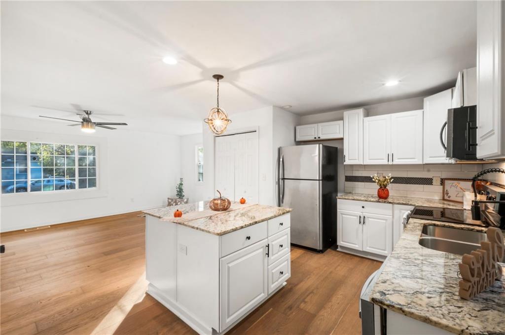 - KitchenCabinets White, Kitchen Island, Pantry, Stone Counters