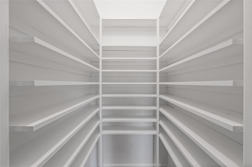 - KitchenCabinets White, Kitchen Island, Pantry Walk-In, Stone Counters, View to Family Room