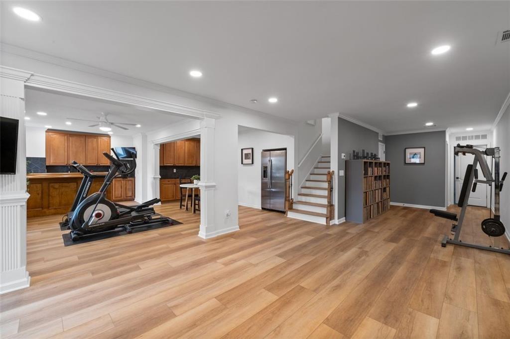 Immaculate home where every single aspect of this home has been updated to the highest level! It is rare to find such custom craftsmanship and attention to detail in a remodeled home! The painted exterior elevates the curb appeal of this home, and the huge yard and oversized lot at .81 acres is all useable and beautifully landscaped! There is plenty of room to have the family spend time outdoors! The full front porch welcomes you into this beautiful home. Throughout the entire home is beautifully finished hardwood flooring with a natural finish. The Dining Room features custom cabinetry for extra entertaining storage, and the piano room with french doors could also be used as an office or study. Every detail in the kitchen is hand picked to pull together a beautiful, high-end custom design! The cabinets, quartz countertops, and additional butler's pantry with extra cabinetry are immaculate and pull the entire design together. The bathrooms have all been updated from top to bottom, and all the bedrooms are spacious, with accent walls to elevate each space. The owner's suite is a true retreat, with an additional sitting area and spa bathroom with a full, extra laundry room! Custom closets make storage in the home a breeze. The finished basement has a full wet bar, exercise area, dining space, loft style bedroom and full bathroom. With lots of natural light and open concept, the basement can be used as a separate apartment or entertaining space! There are not one, but two exterior screened in porches which overlook the beautiful yard! 3-car Garage and detached storage shed provide plenty of workshop/storage in the home! New HVAC systems, water heater, roof, and lighting system make this home feel even more luxurious and brand new than some new construction homes. The community amenities are state of the art with swim, tennis, pavilion, basketball court and playground, and provide fun opportunities for the whole family to enjoy without leaving the neighborhood.