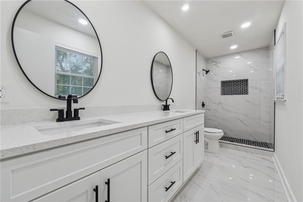 Welcome to 676 Bralorne Drive in Stone Mountain – where modern design meets everyday comfort. This fully renovated, single-level ranch offers 4 spacious bedrooms and 2 beautifully updated bathrooms, all on one easy-living level. Step inside to discover brand-new flooring and a fresh open-concept layout that blends style and functionality. The light-filled living room features an elegant electric fireplace—perfect for cozy evenings—while the kitchen offers oversized quartz countertops with a dramatic waterfall edge, sleek new cabinetry, and a seamless flow into the living space, ideal for entertaining. Situated in a convenient Stone Mountain location, you’ll enjoy quick access to shops, dining, parks, and major highways—making your daily commute and weekend adventures a breeze.