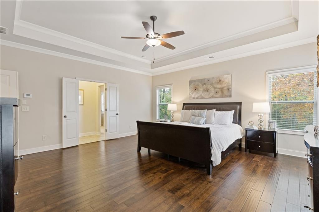 WELCOME HOME TO YOUR Stunning 5BR/5BA executive home on a premium cul-de-sac corner lot in Alpharetta’s GATED Central Park at Deerfield community. Featuring swim, tennis, private walking nature trail, and landscaping fully included. This beautifully upgraded home offers an open-concept main level with hardwood floors throughout, a large chef’s kitchen with walk-in pantry, fireside family room, and an oversized primary retreat with generous his & her closet and spa bath. Secondary bedrooms include jack-and-jill and private ensuite layouts. The finished terrace level is an entertainer’s dream with a full bar, home gym, media/game space, and full bath, plus walk out access to serene outdoor entertainment areas ideal for gatherings, grilling, or unwinding. **Additional highlights include: 1) Brick and shake exterior with timeless architectural details 2) Extra parking afforded by the premium corner lot 3) Covered front porch and private rear patio areas and 4) Alpharetta address with Forsyth County taxes. Minutes to Halcyon, Avalon, Downtown Alpharetta, top-rated schools, parks, restaurants, and shopping this executive home offers convenience with gated luxury lifestyle. WELCOME TO YOUR NEW HOME!