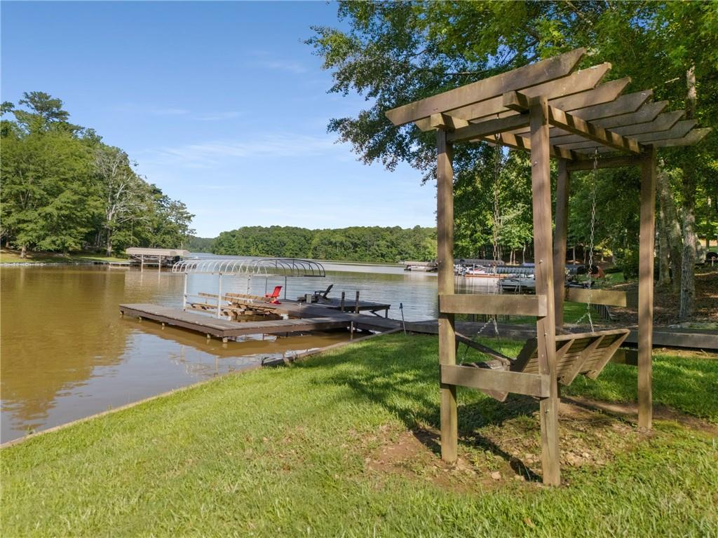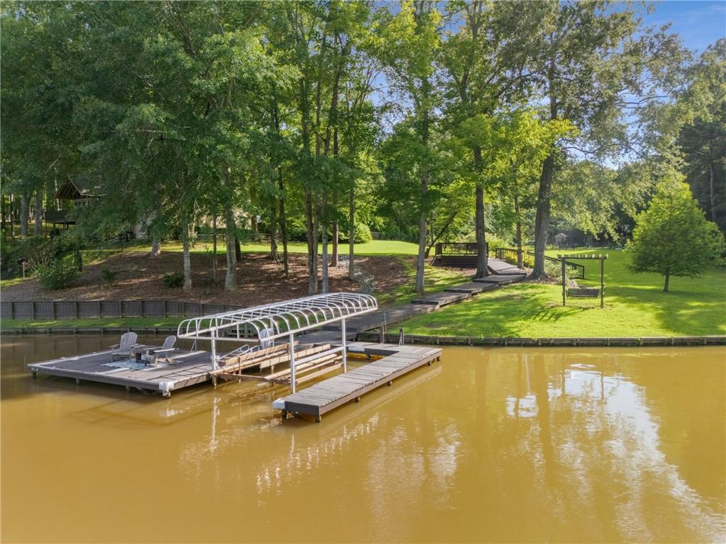Welcome to 1951 Swords Trail - Your Private Lake Oconee Retreat Imagine the gentle summer breeze across the water, the rhythmic slap of a pontoon gliding across the lake, and the sound of laughter echoing from paddleboards and kayaks. Nestled on a peaceful, tree-lined lane in one of Lake Oconee's most secluded and serene enclaves, 1951 Swords Trail is a home that whispers of quiet luxury, refined privacy, and timeless natural beauty. This distinctive estate is more than a residence - it's a sanctuary. Just minutes from the Southern charm of historic downtown Madison and only an hour from the energy of Atlanta, this exquisite home feels a world apart while offering easy access to everything. Step inside to soaring ceilings and sun-drenched rooms, where wide-plank hardwoods, custom millwork, and elegant finishes create an inviting, sophisticated atmosphere. The open-concept living and dining area is anchored by a grand fireplace - perfect for cozy evenings - while oversized windows frame views of rolling green lawns and peaceful lakefront scenes. Whether it's morning coffee on the porch or sunset cocktails with friends, every corner invites you to pause, breathe, and enjoy. The chef's kitchen is a standout - sleek, spacious, and designed for both beauty and function. Outfitted with premium appliances, stone countertops, and fine wood cabinetry, it's the perfect setting for casual brunches or lively dinner parties. The main-level primary suite is a true retreat, offering serene views, a spa-style ensuite bath, dual walk-in closets, and direct access to a full private laundry room. Upstairs, you'll find three generously sized bedrooms and two full bathrooms - perfect for family or guests. Need more space? The expansive finished terrace level features a second primary suite with ensuite bath, a private home office with lightning-fast internet, and ample room for hosting or relaxing. Outdoors, your own private garden oasis awaits - with mature trees, perennial blooms, the tranquil sound of a waterfall, and a chorus of birds welcoming you each day. The property also includes a two-car garage, an oversized boat garage.. 1951 Swords Trail is the rare opportunity to live where nature, elegance, and comfort converge - a peaceful retreat that also keeps you close to the best of Georgia living. This isn't just a home - it's your next chapter.
