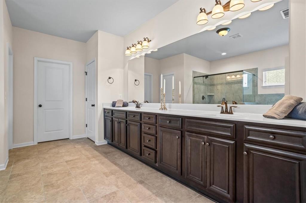 Move-in ready 4-bedroom home in a beautifully maintained community! This spacious home features a flex room, formal dining, and a chef's kitchen with double ovens, gas cooktop, large island, and stone countertops. The oversized primary suite boasts his & hers walk-in closet, double vanities, and a spa-like bath with a garden tub and tiled shower. Enjoy upgrades like whole-house speakers, custom blinds, tray ceilings, and a cozy fireplace in the family room. Step outside to an enlarged covered patio, ideal for relaxing or entertaining. Located in a quiet, established neighborhood just minutes from Conyers shopping, dining, and I-20, with the benefit of lower Newton County taxes. Schedule your private showing today. This one won't last!