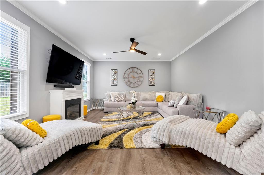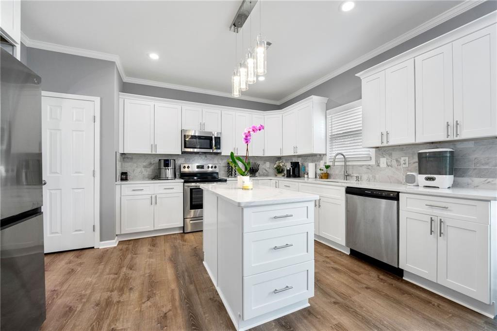 Welcome to 1892 Ivy View Walk, a beautifully updated 5-bedroom, 3-bathroom home offering 2,664 square feet of modern living in Arbors at Rosebud in Loganville, GA. This residence boasts a brand-new kitchen with white shaker cabinets, granite countertops, and stainless steel appliances. The bathrooms have been tastefully renovated, and new flooring has been installed throughout the home. There is a main floor flex room with a complimentary barn door that can be used as an office or a bedroom. With its spacious layout and contemporary lighting and upgrades, this move-in-ready home provides comfort and style in a desirable location.